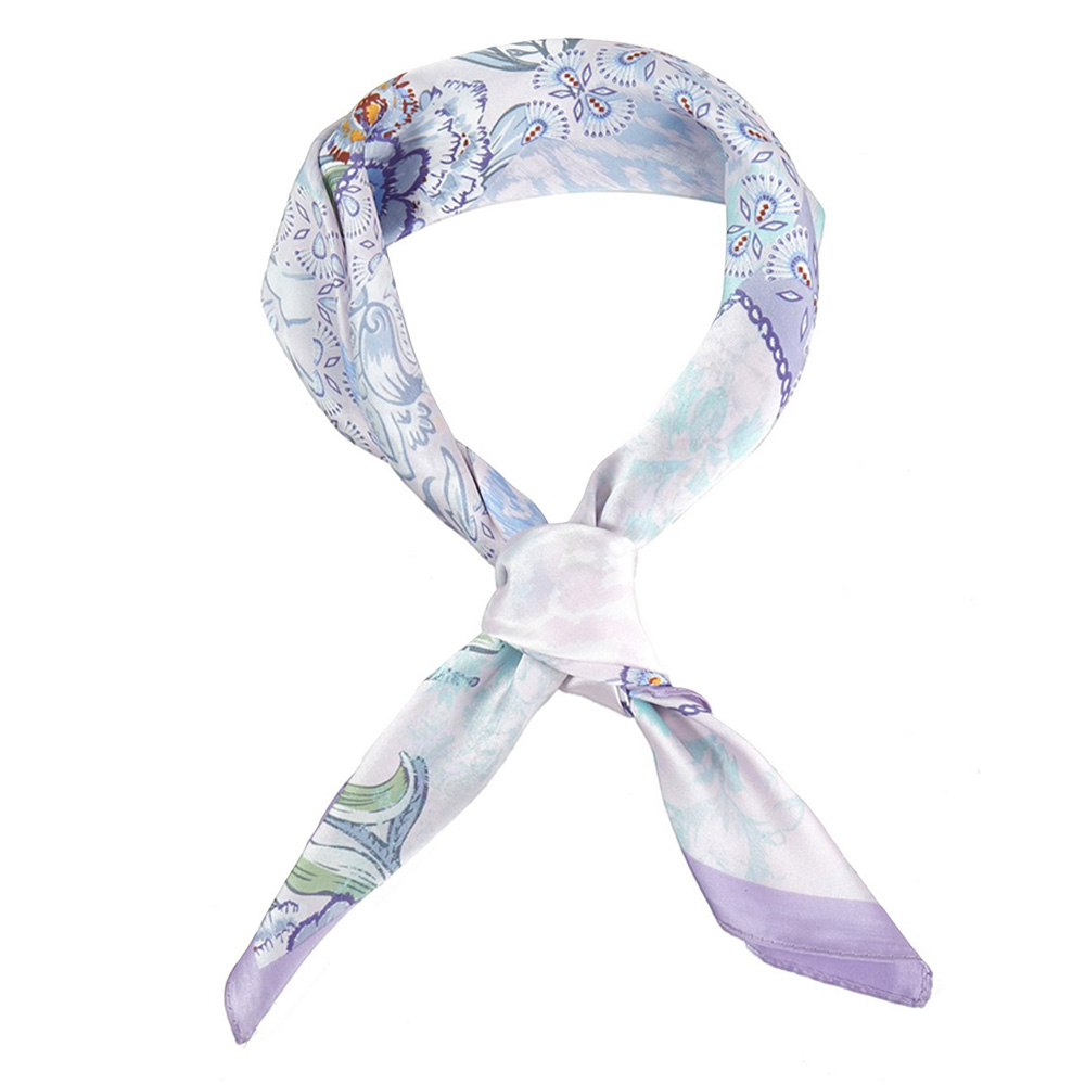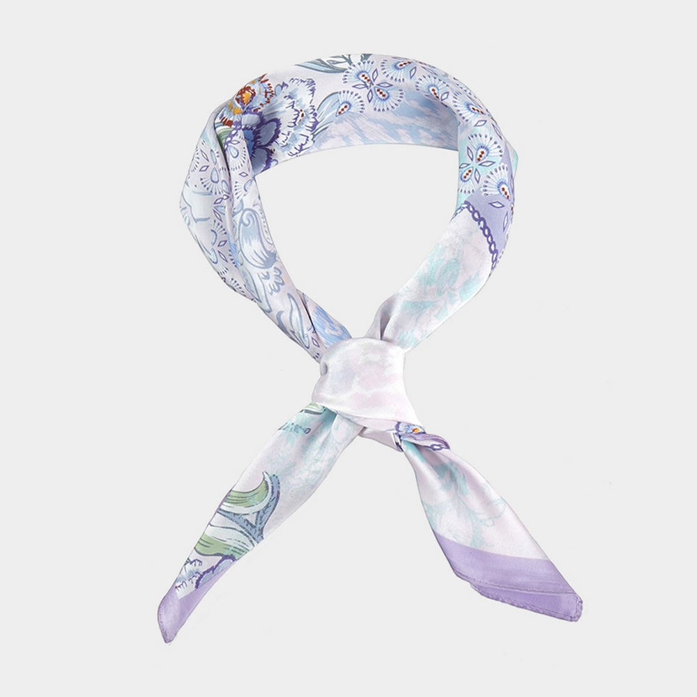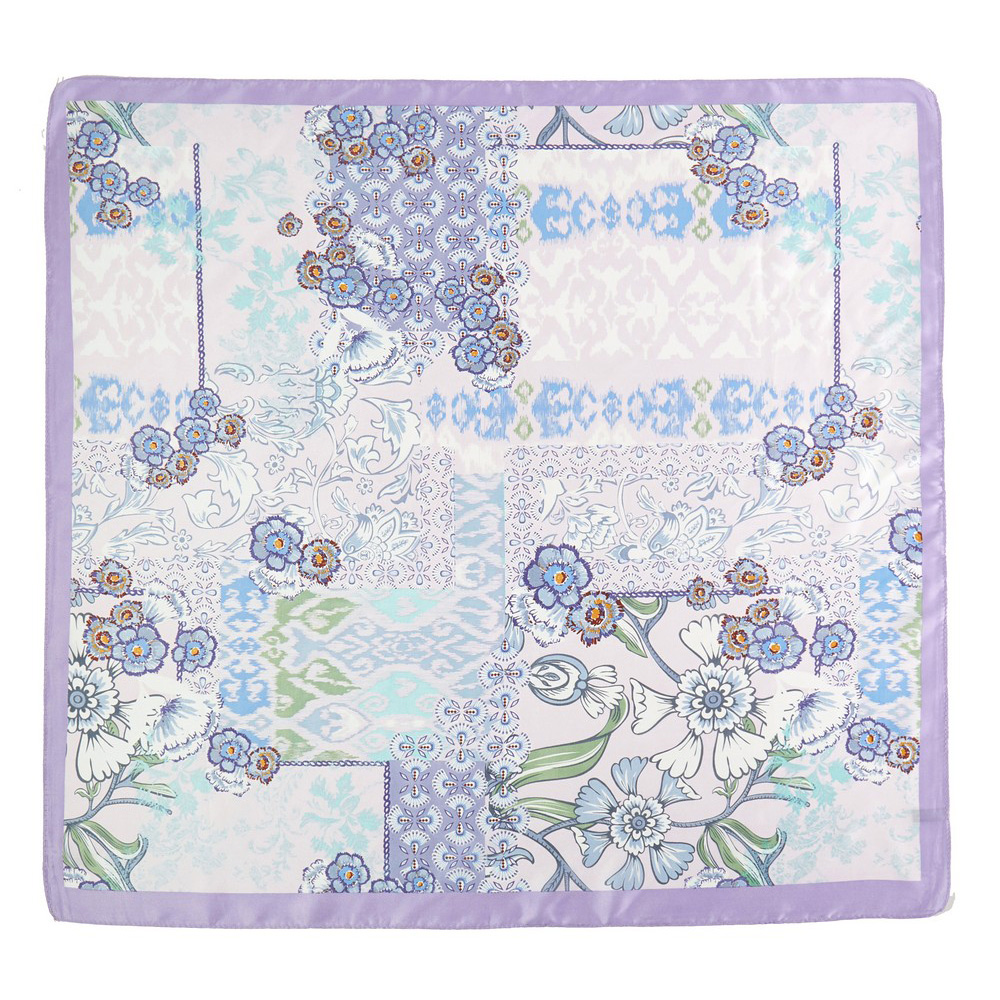 Pastel Floral Patchwork Printed Square Silky Satin Scarf