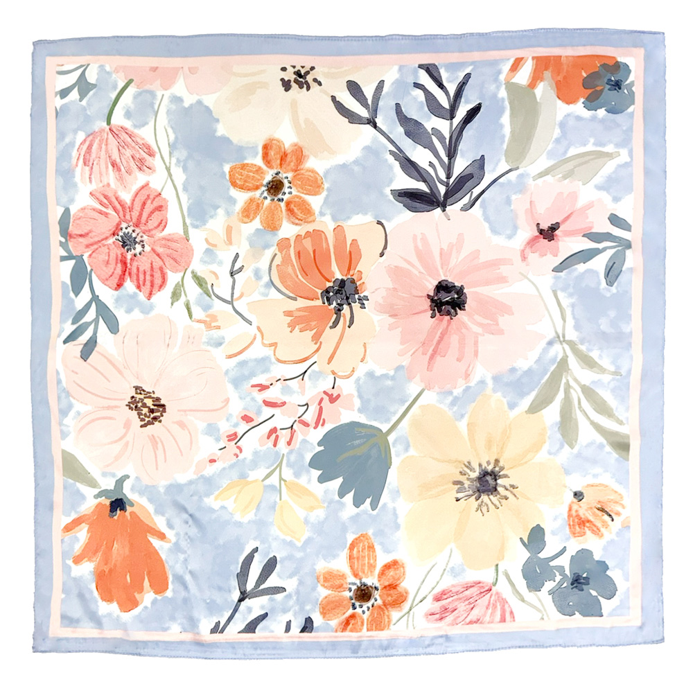 Vintage Floral Bloom Printed Square Silky Satin Scarf