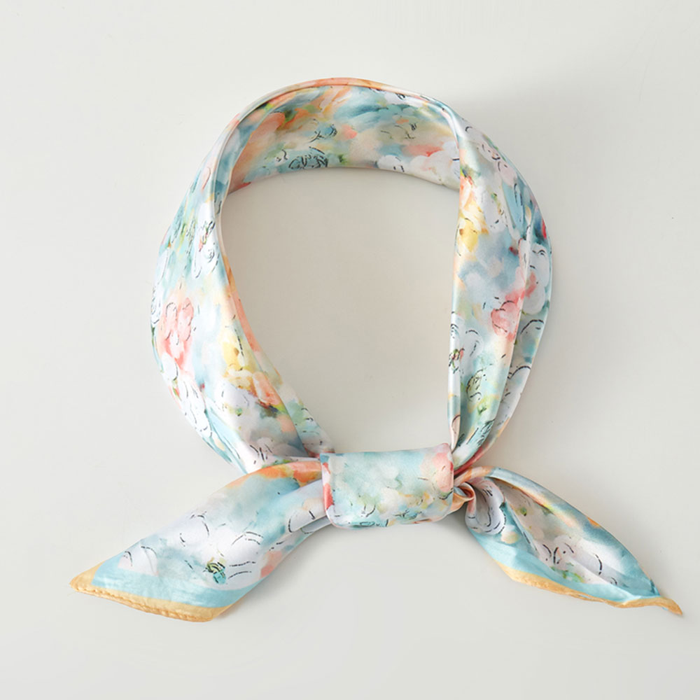 Watercolor Floral Pattern Printed Square Silky Satin Bandana Scarf