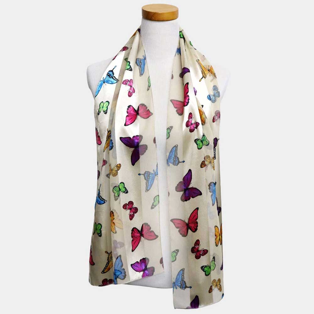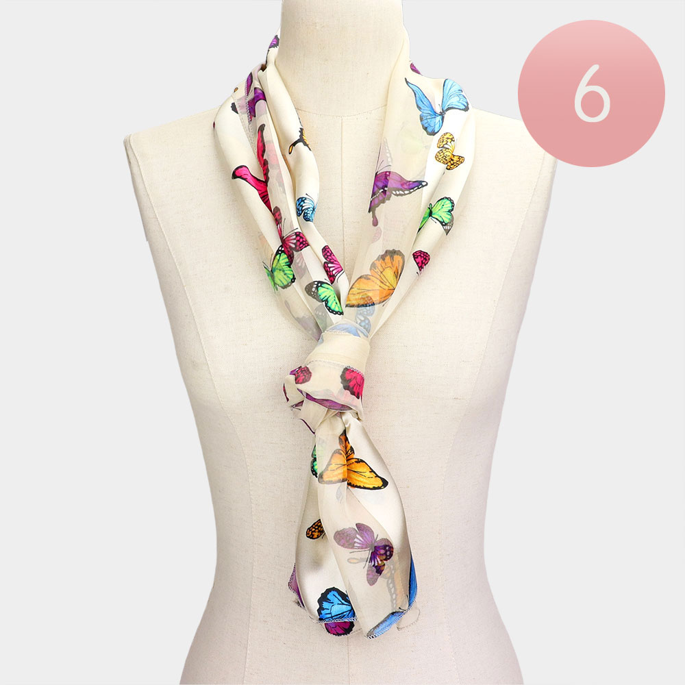 6PCS - Silk Feel Satin Butterfly Patterned Scarves