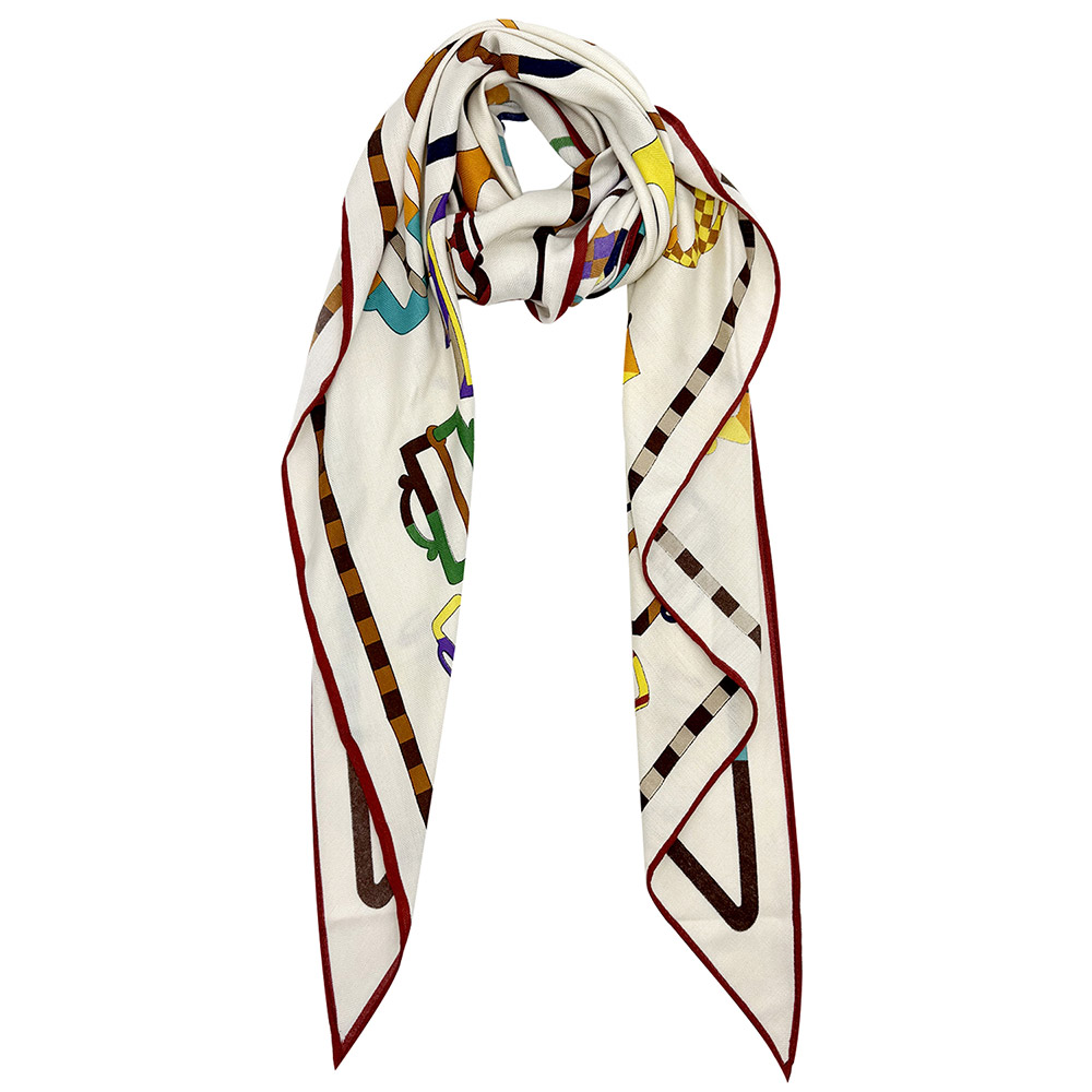 Abstract Pattern Printed Triangle Shape Cashmere Silk Blend Scarf
