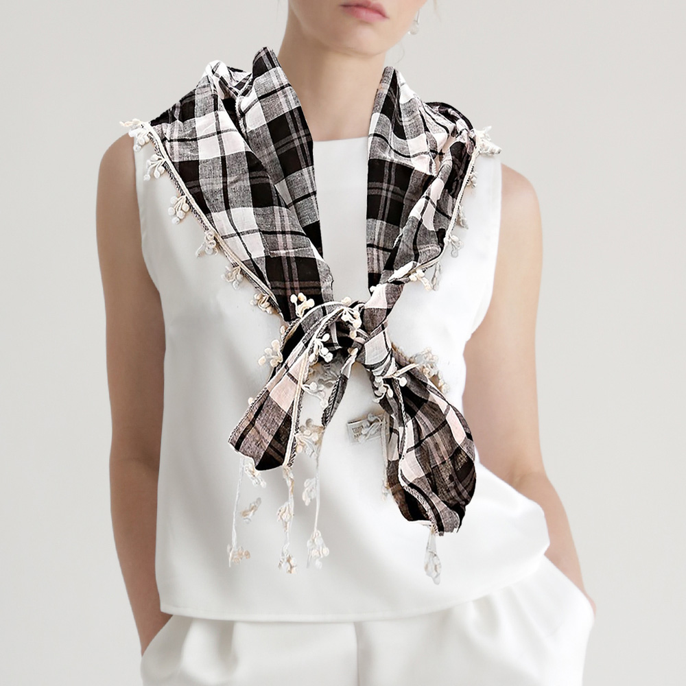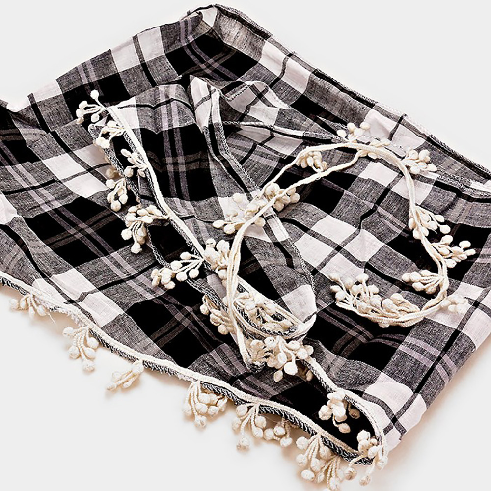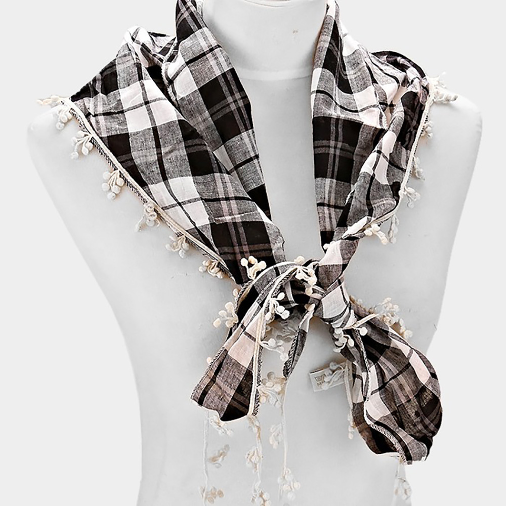 Crochet Drop Fringe Plaid Check Scarf