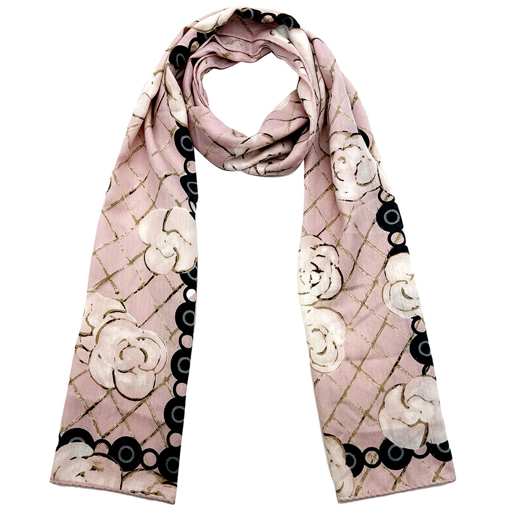 Flower Pattern Printed Cashmere Silk Blend Scarf