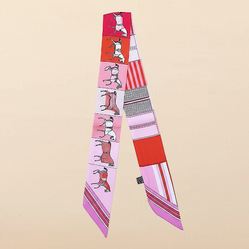 Geometric Square Horse Pattern Printed Twilly Skinny Scarf