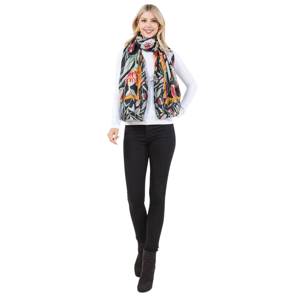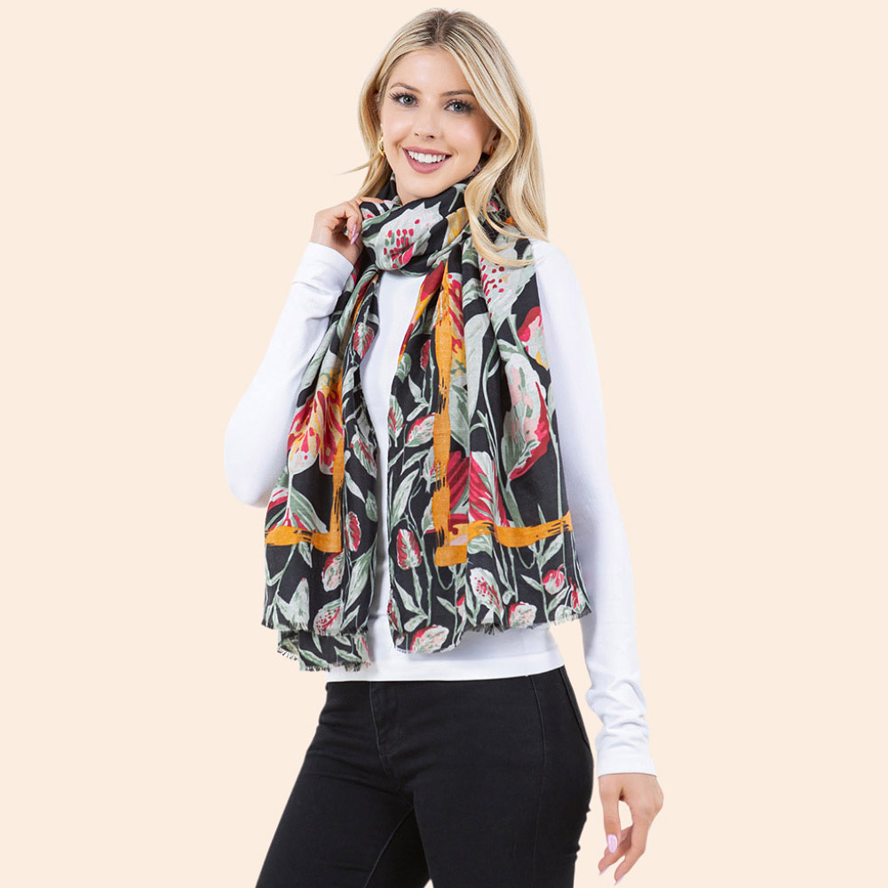 • Elevate your look with this lightweight scarf featuring an elegant floral print. A versatile accessory that adds charm and softness to your outfit, perfect for casual wear or layering during transitional weather.