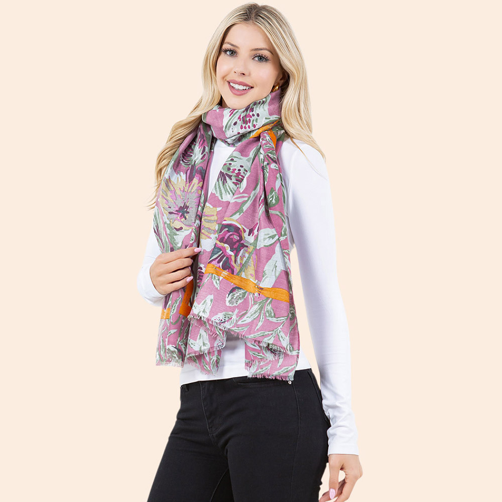 Details • Size : One Size • Material : 100% Polyester • Elevate your look with this lightweight scarf featuring an elegant floral print. A versatile accessory that adds charm and softness to your outfit, perfect for casual wear or layering during transitional weather.