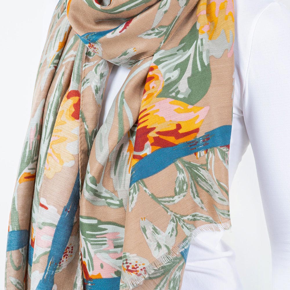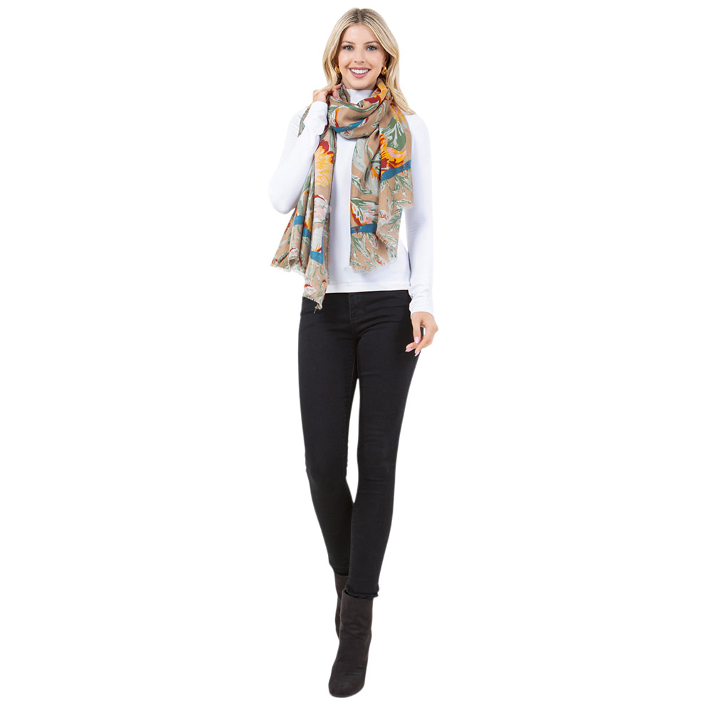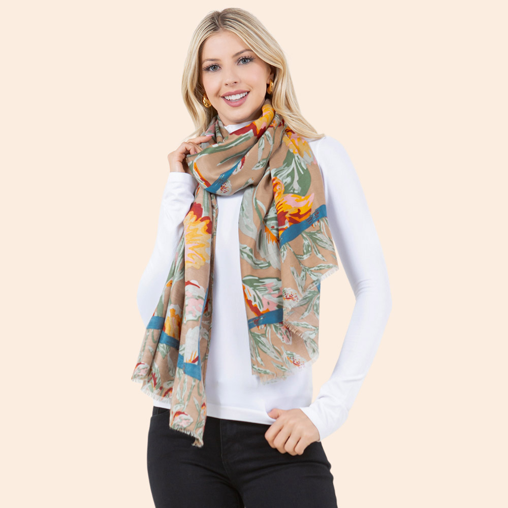 • Elevate your look with this lightweight scarf featuring an elegant floral print. A versatile accessory that adds charm and softness to your outfit, perfect for casual wear or layering during transitional weather.