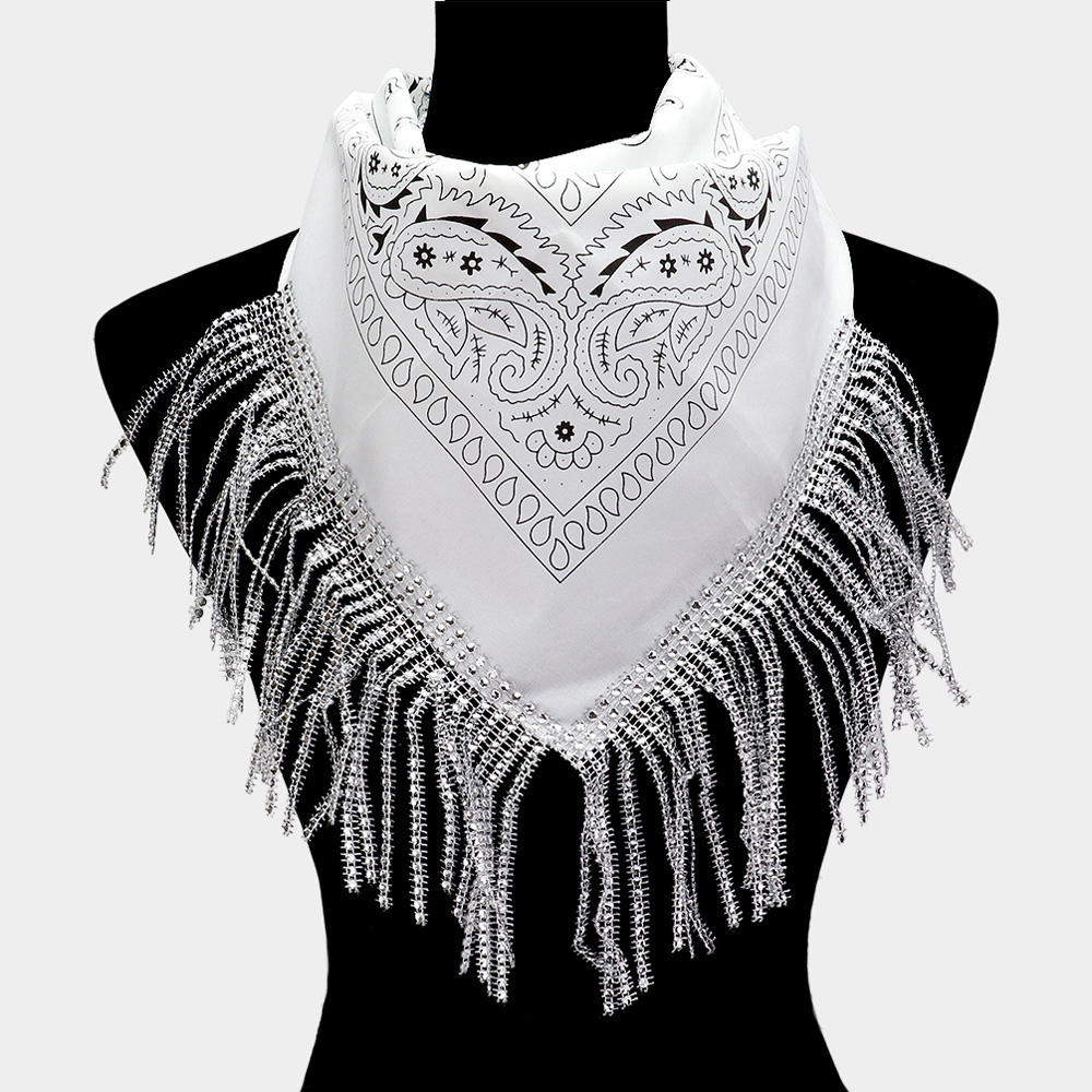 Rhinestone Like Fringe Cowgirl Bandana Scarf