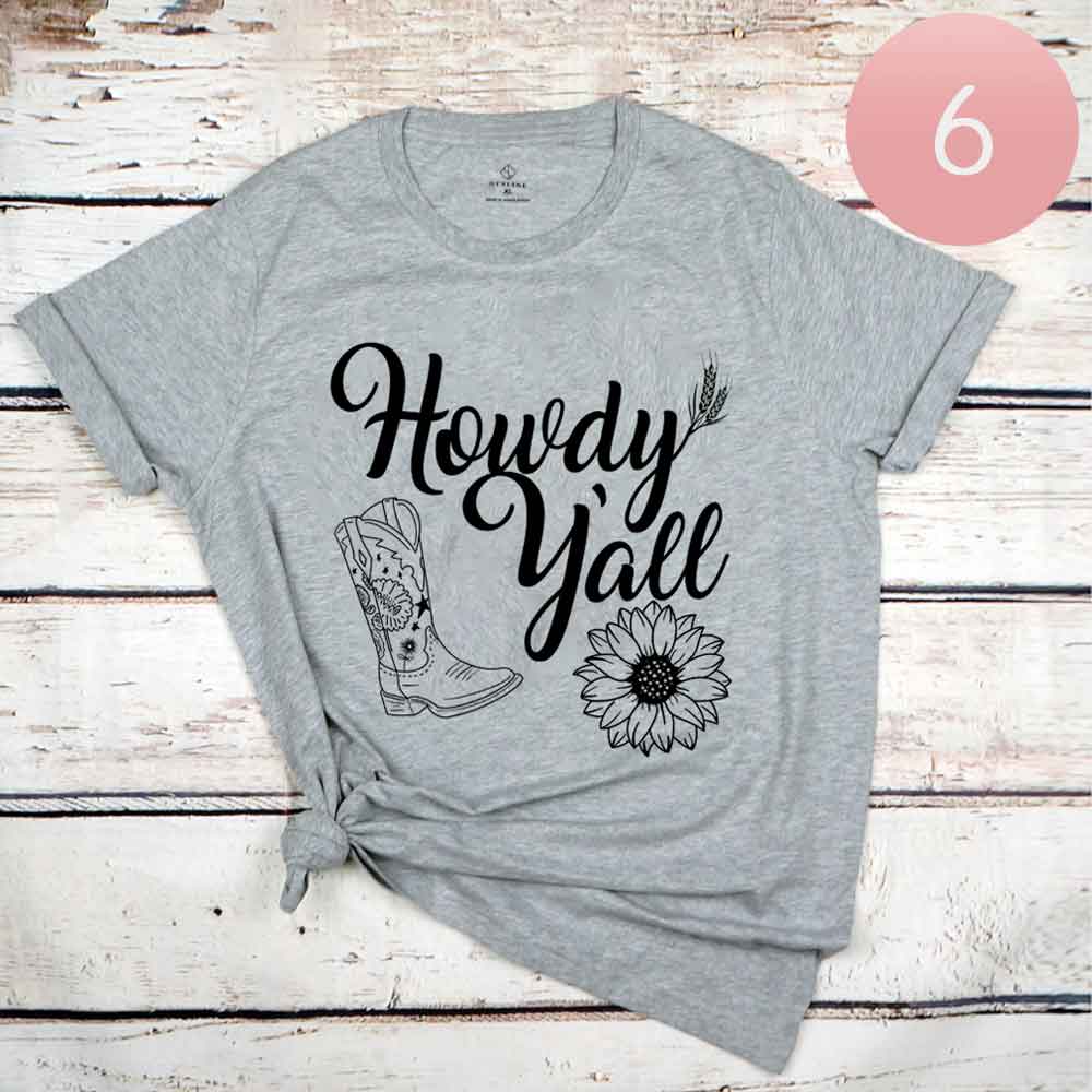 6PCS - Assorted Size Howdy Y'all Graphic T-shirts