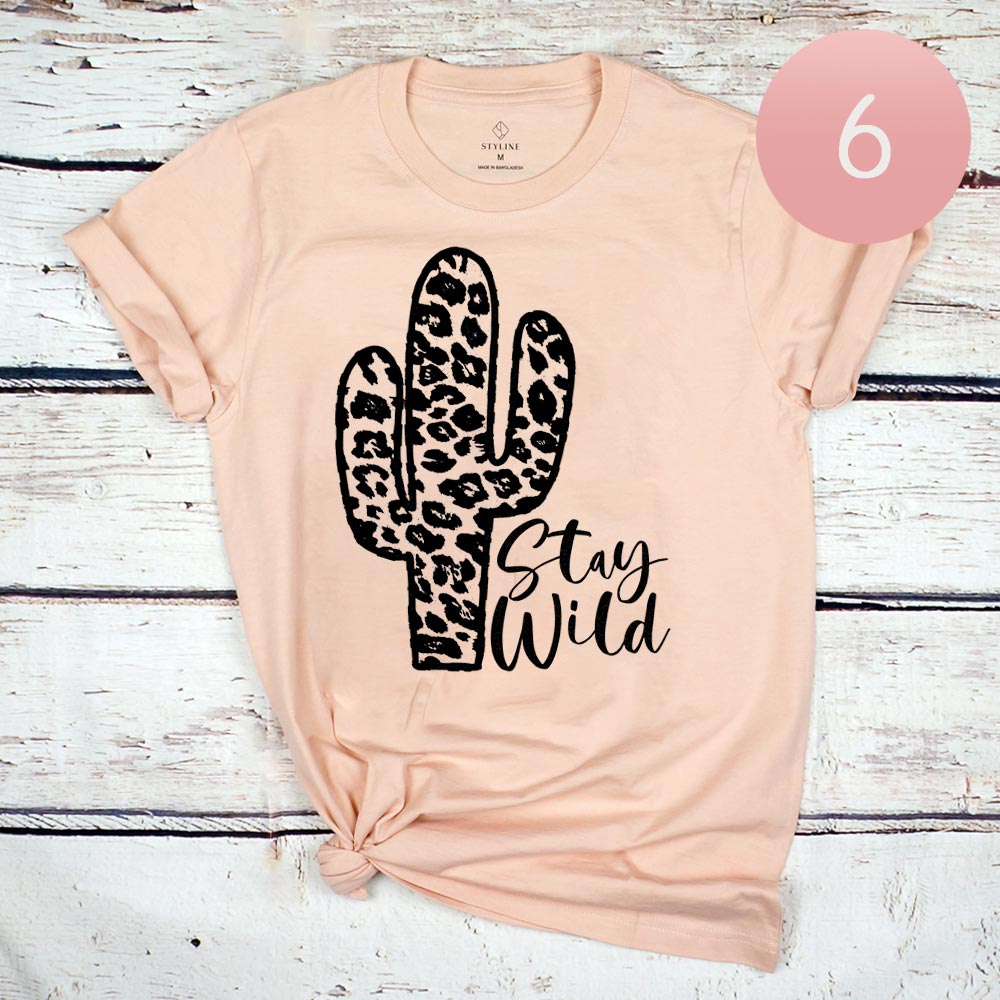 6PCS - Assorted Size Stay Wild Cactus Graphic T-shirts