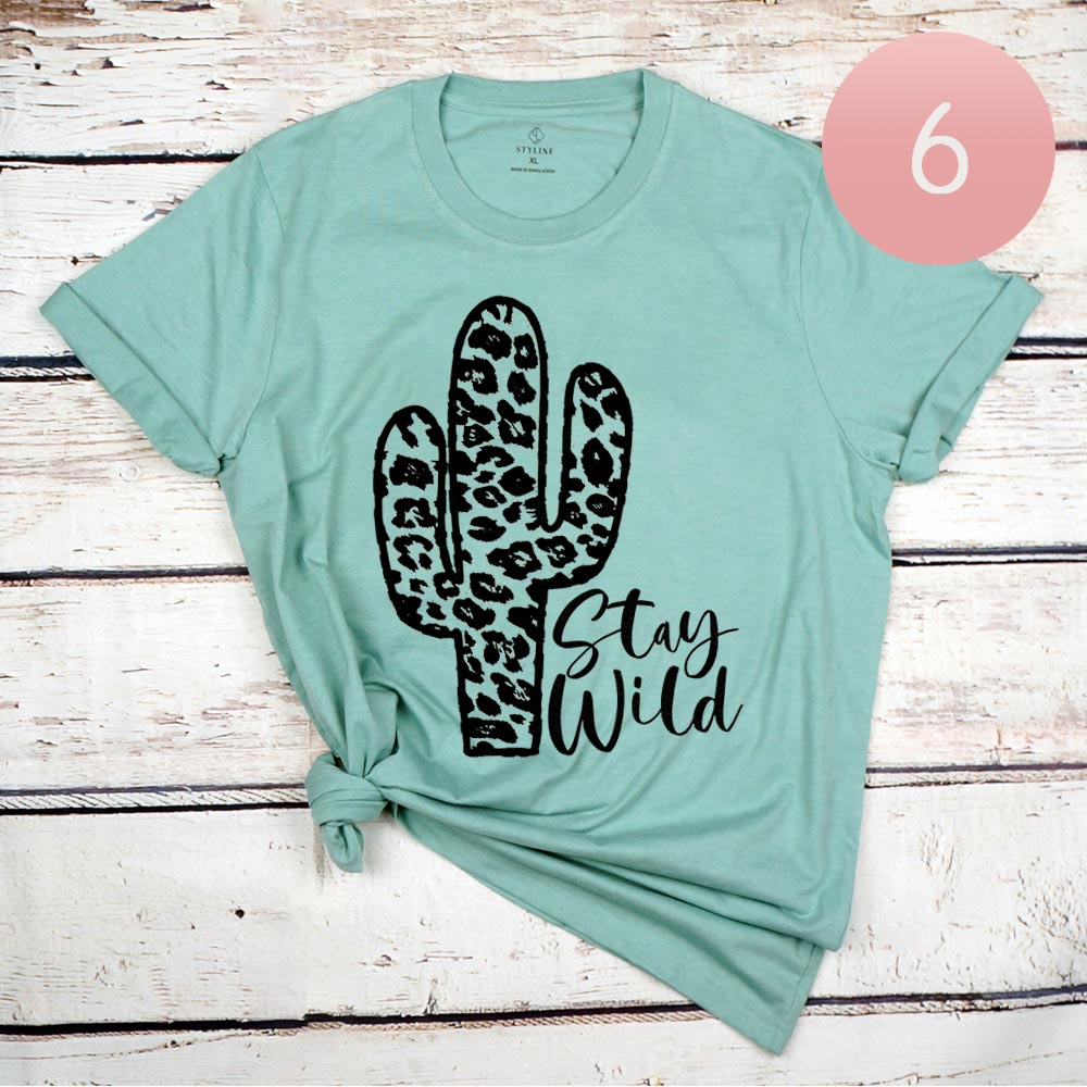 6PCS - Assorted Size Stay Wild Cactus Graphic T-shirts