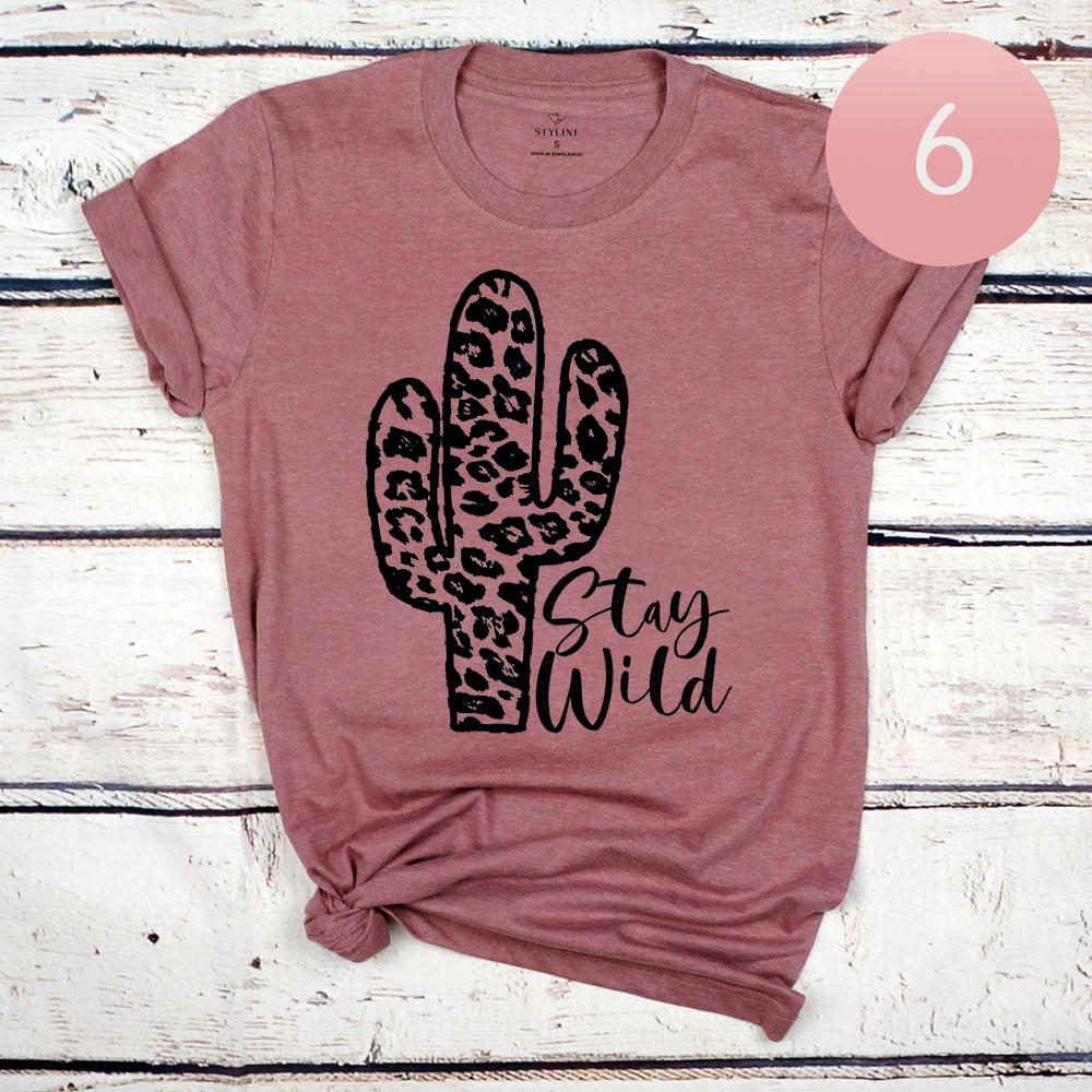 6PCS - Assorted Size Stay Wild Cactus Graphic T-shirts