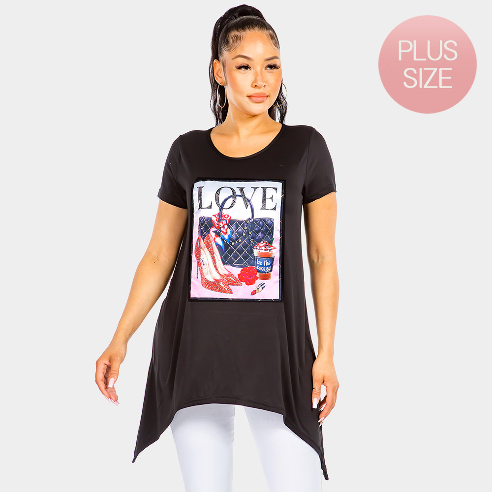 Bling Love Graphic Printed Half Sleeves Top