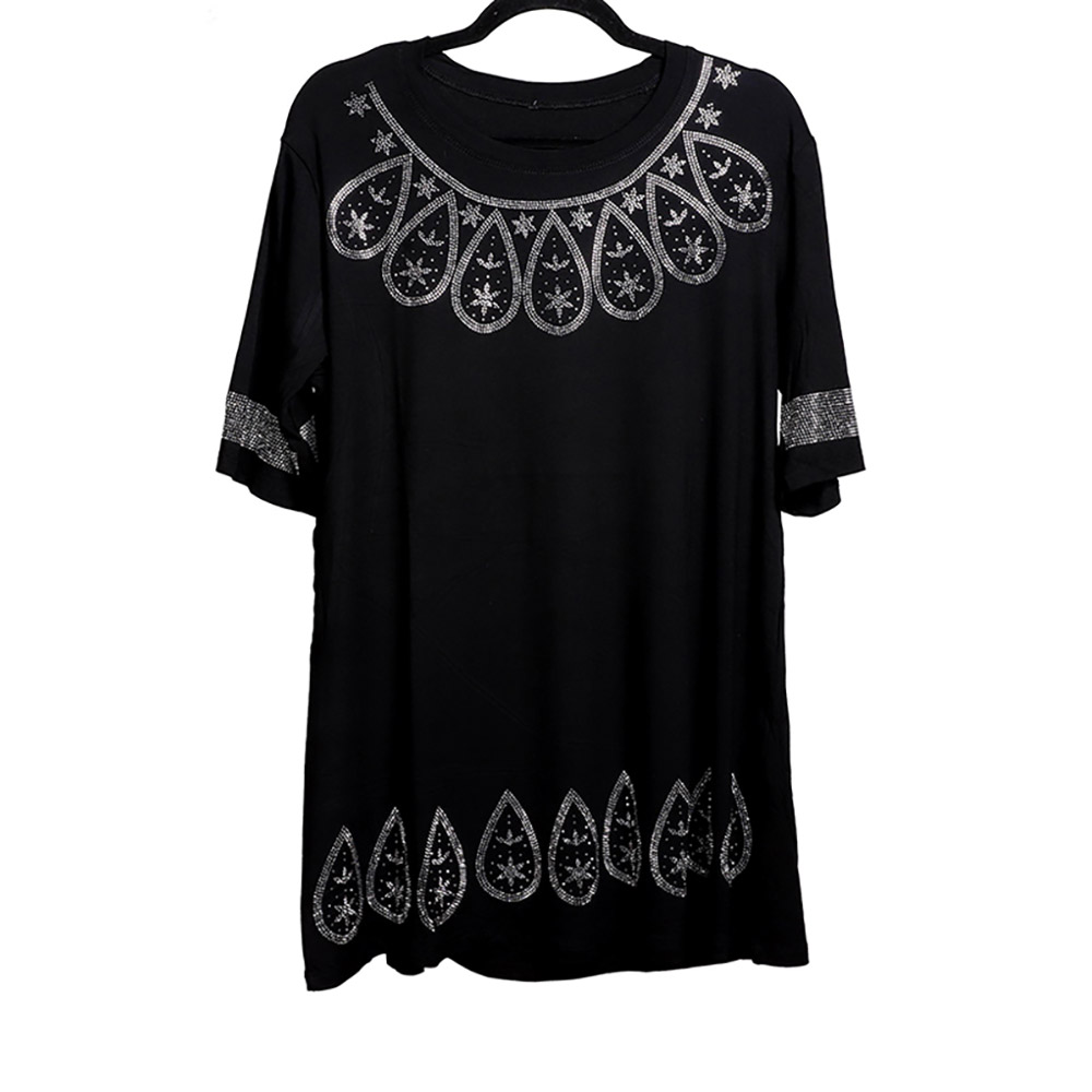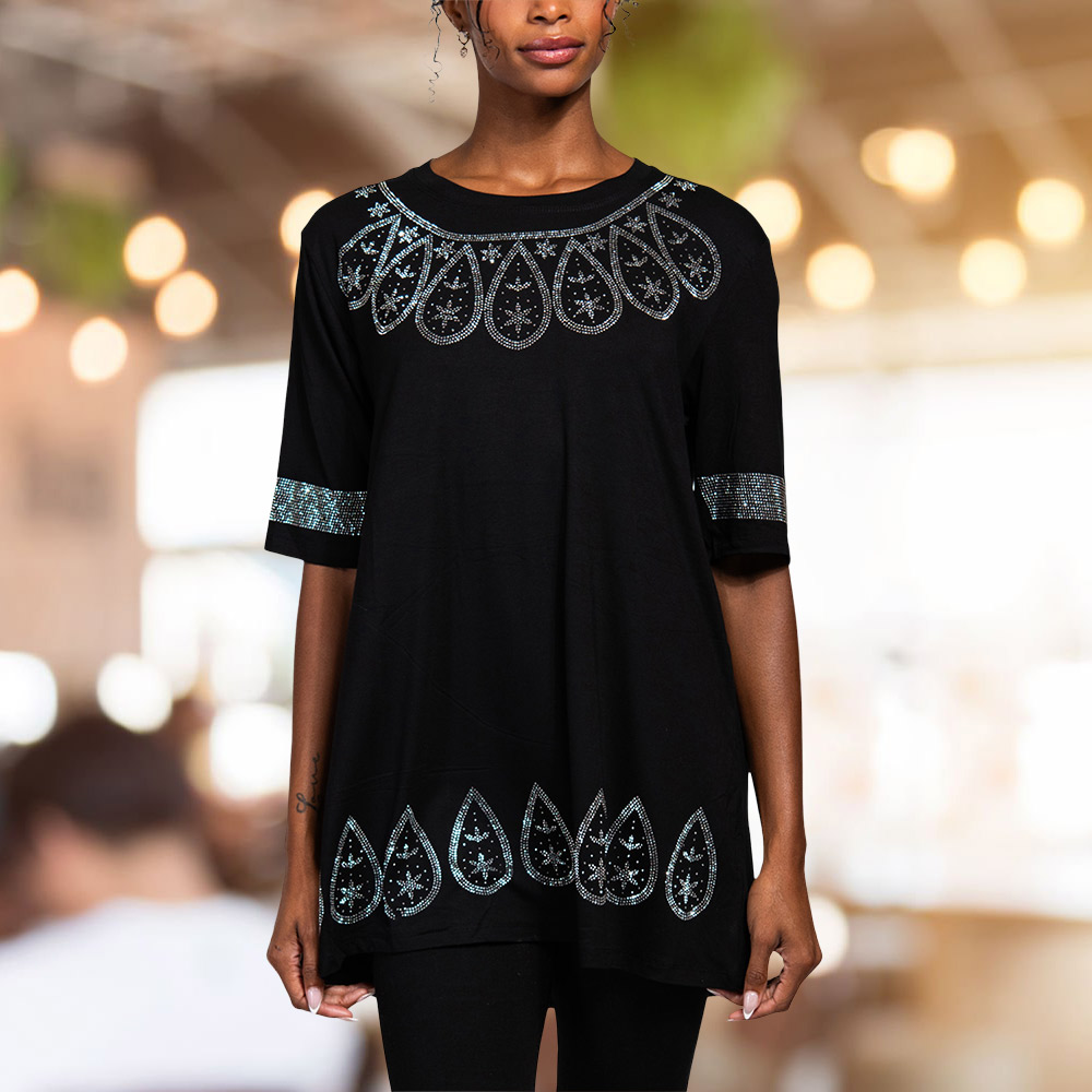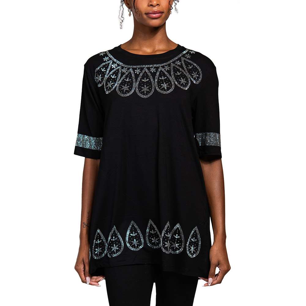 Bling Studded Boho Pattern Pointed Half Sleeve Top