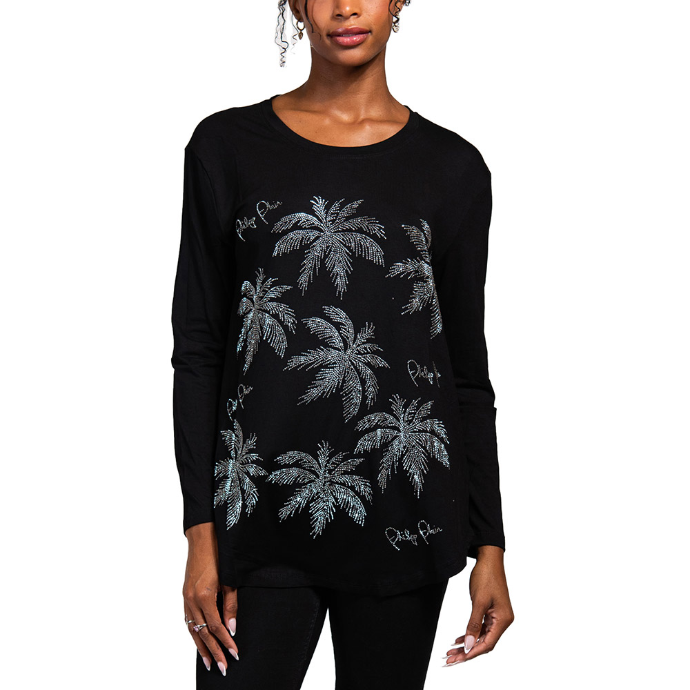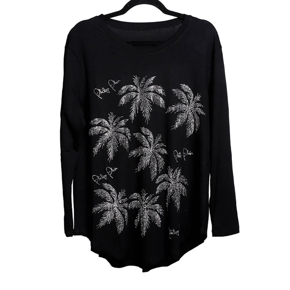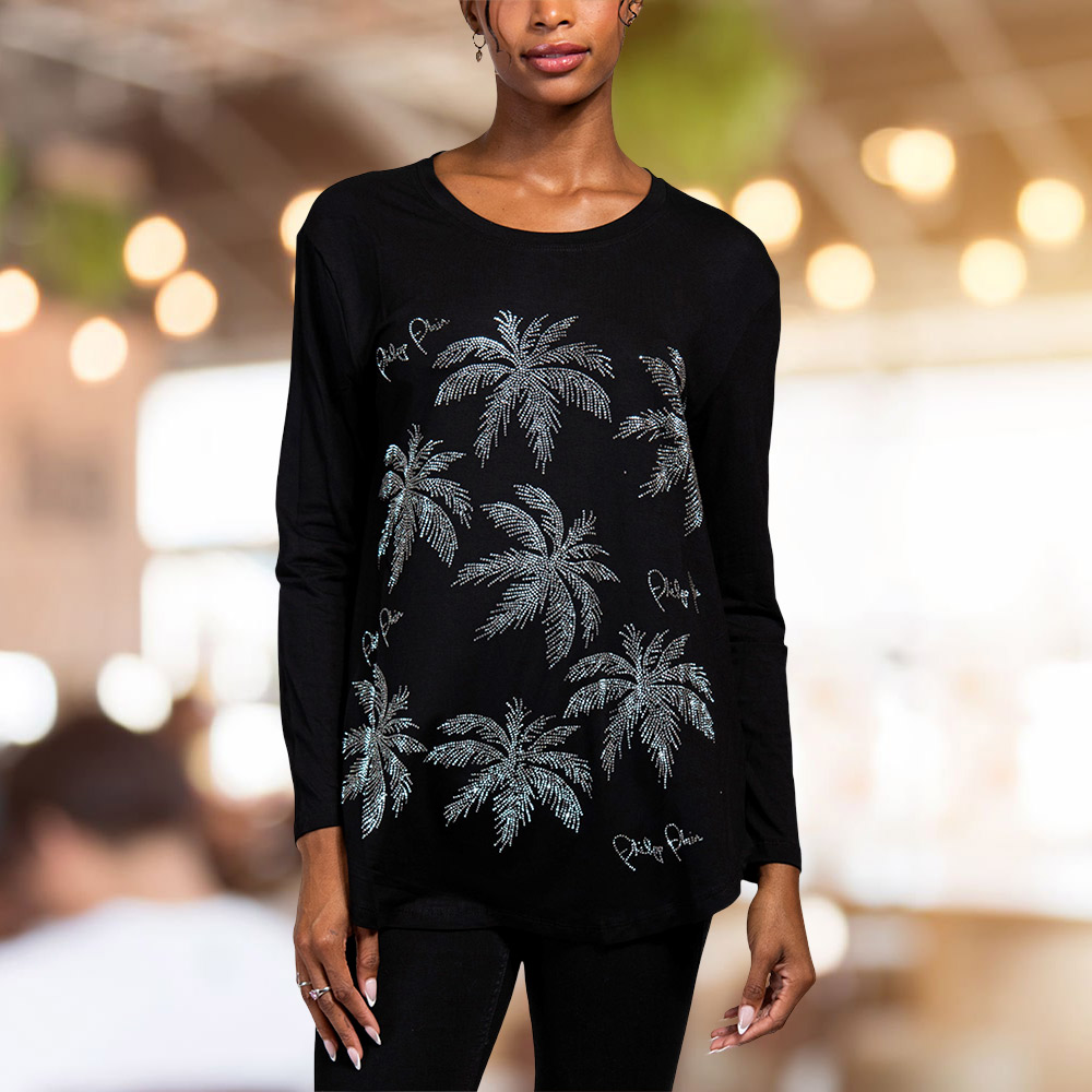 Bling Studded Palm Tree Printed Long Sleeve Top