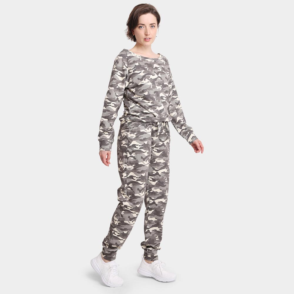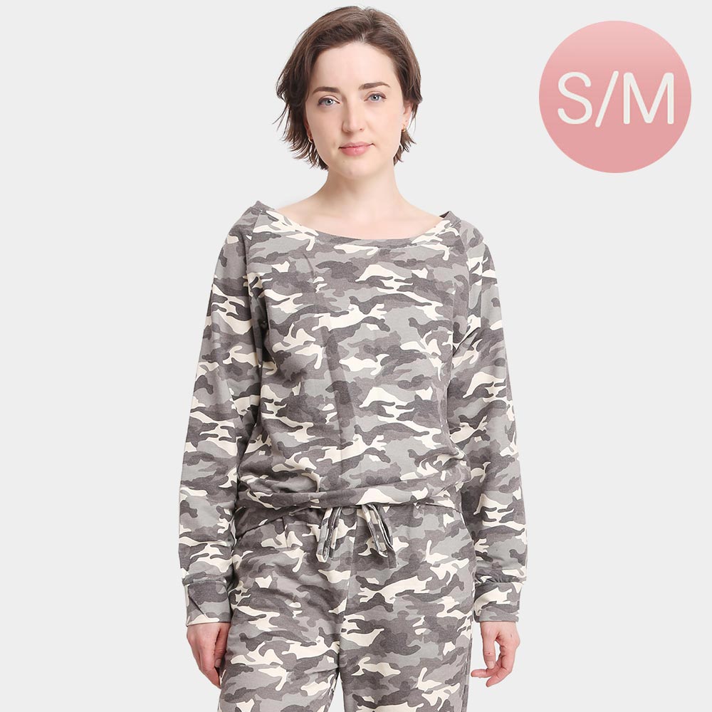 Camouflage Patterned Boat Neck Loungewear Sweatshirts Top