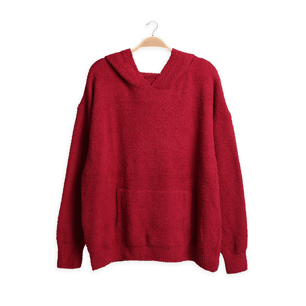 • Stay comfortable in this oversized hooded pullover featuring a relaxed fit and front pocket for added practicality. Designed with a plush texture and casual silhouette, it’s a versatile piece perfect for layering or wearing on its own during cooler days.