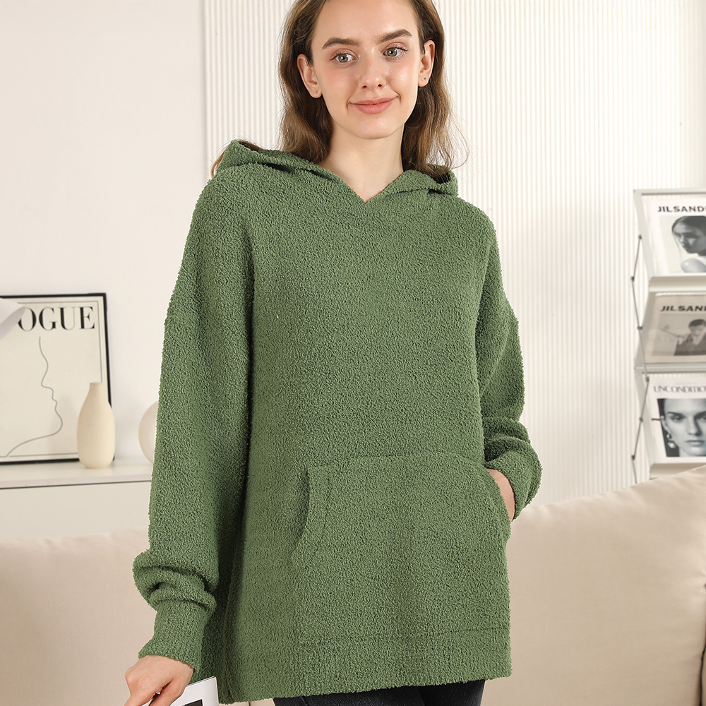 • Stay comfortable in this oversized hooded pullover featuring a relaxed fit and front pocket for added practicality. Designed with a plush texture and casual silhouette, it’s a versatile piece perfect for layering or wearing on its own during cooler days.