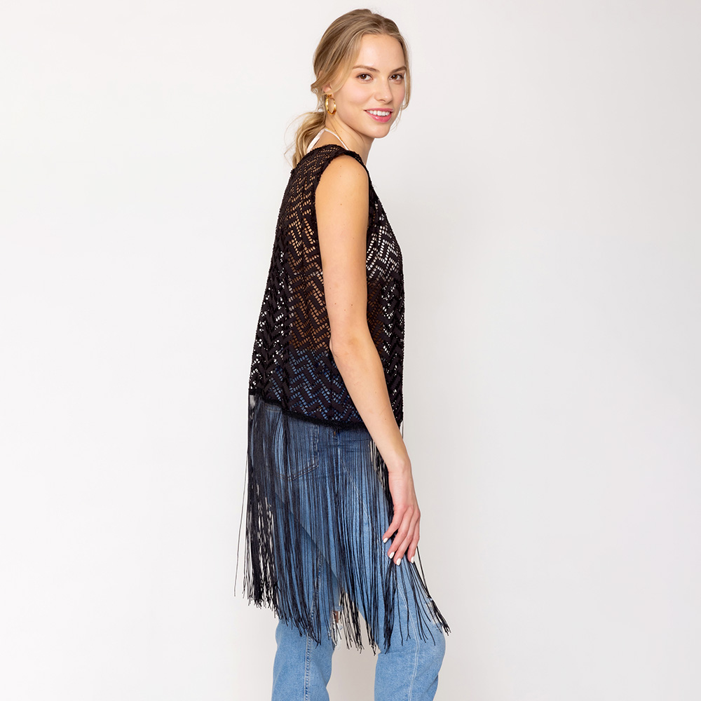 Fringe Trim Crochet Draped Shawl Wrap Cardigan