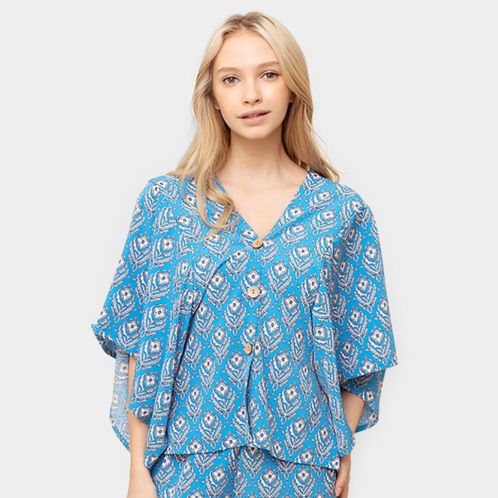 Floral Print Button Down Kimono Poncho