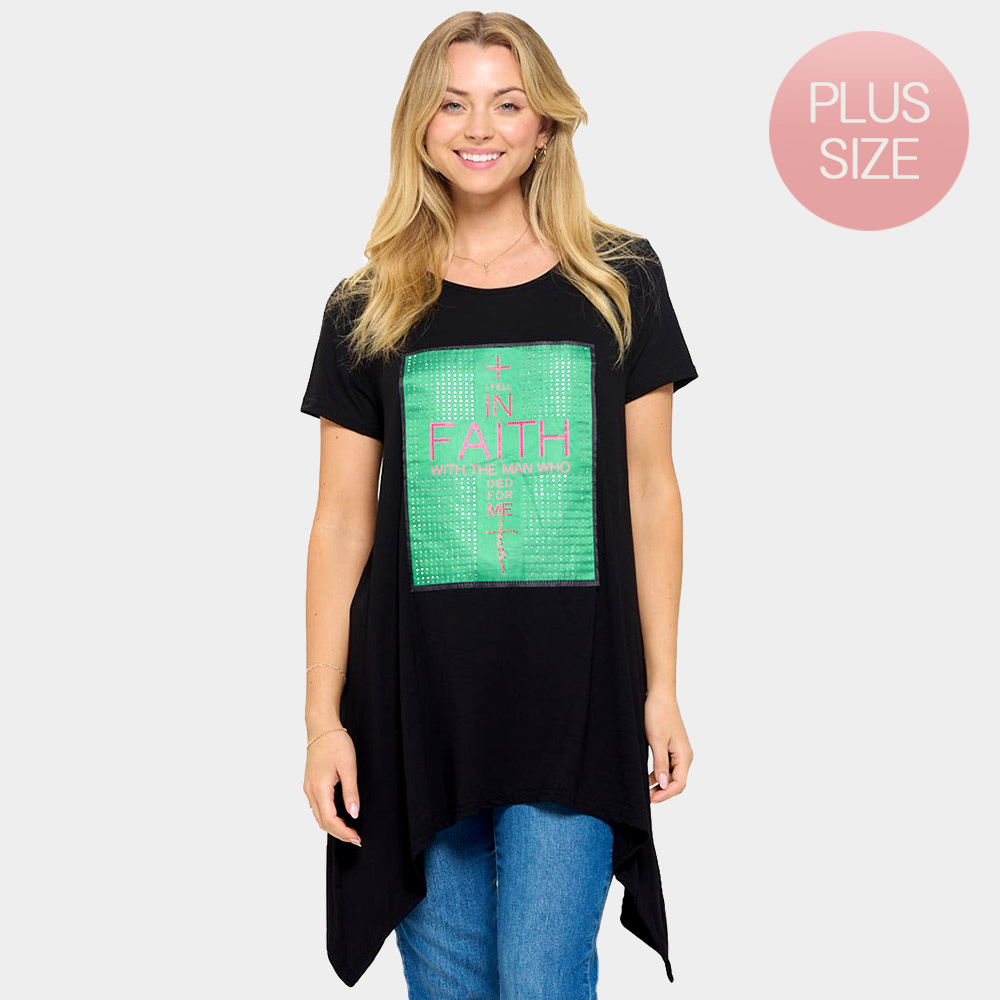 In Faith With The Man Who Died For Me Message Printed Half Sleeve Top