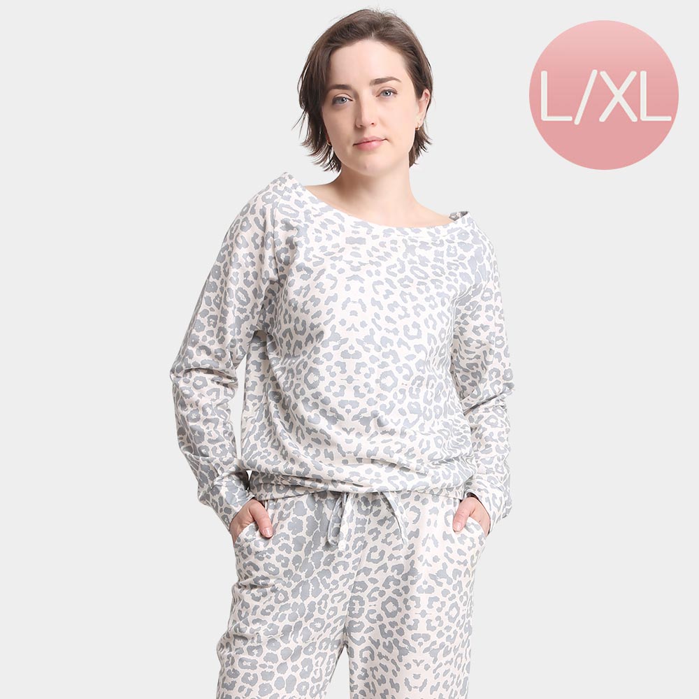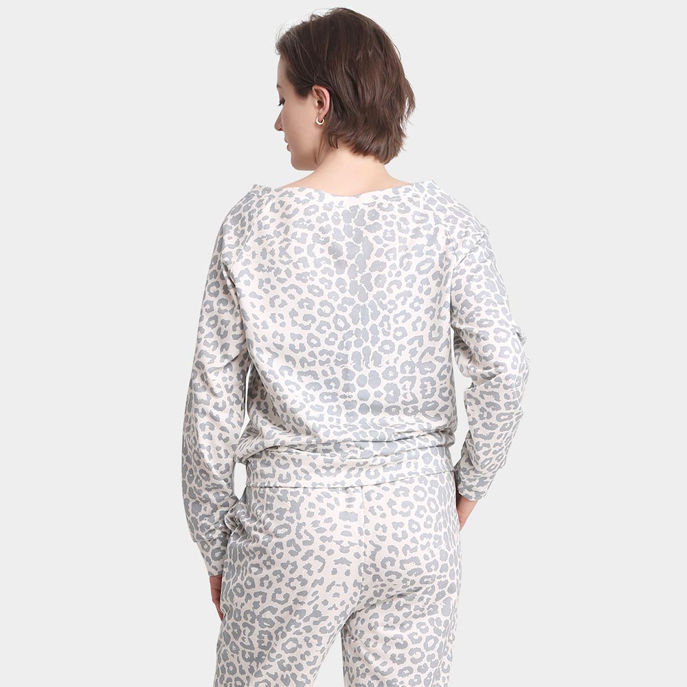 Leopard Patterned Boat Neck Loungewear Sweatshirts Top