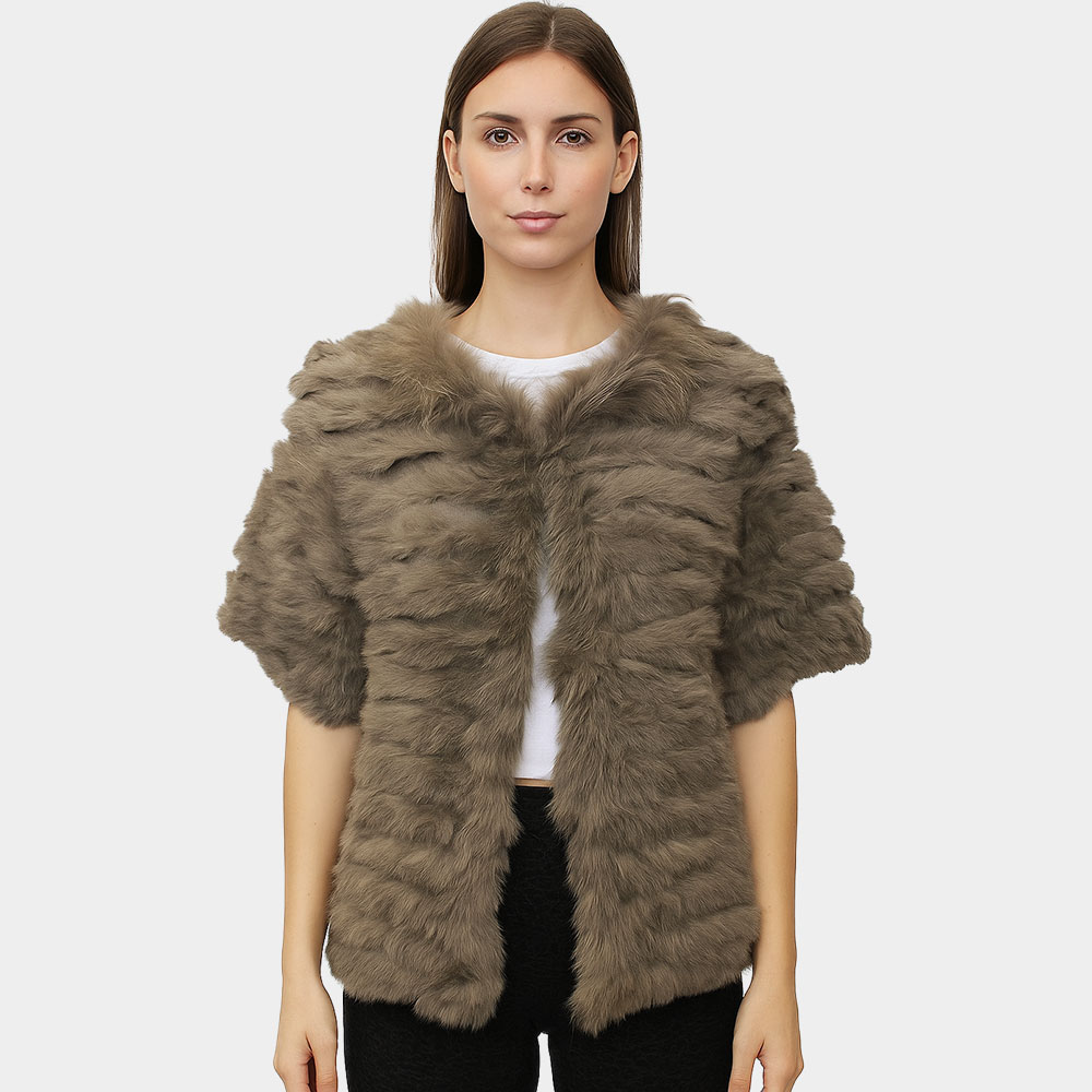 • This short sleeve fur jacket brings effortless sophistication to any look. Featuring a plush collar and structured silhouette, it adds warmth and refined texture. Perfect for layering over evening wear or casual chic outfits, it’s a timeless piece for elegant, modern styling.
