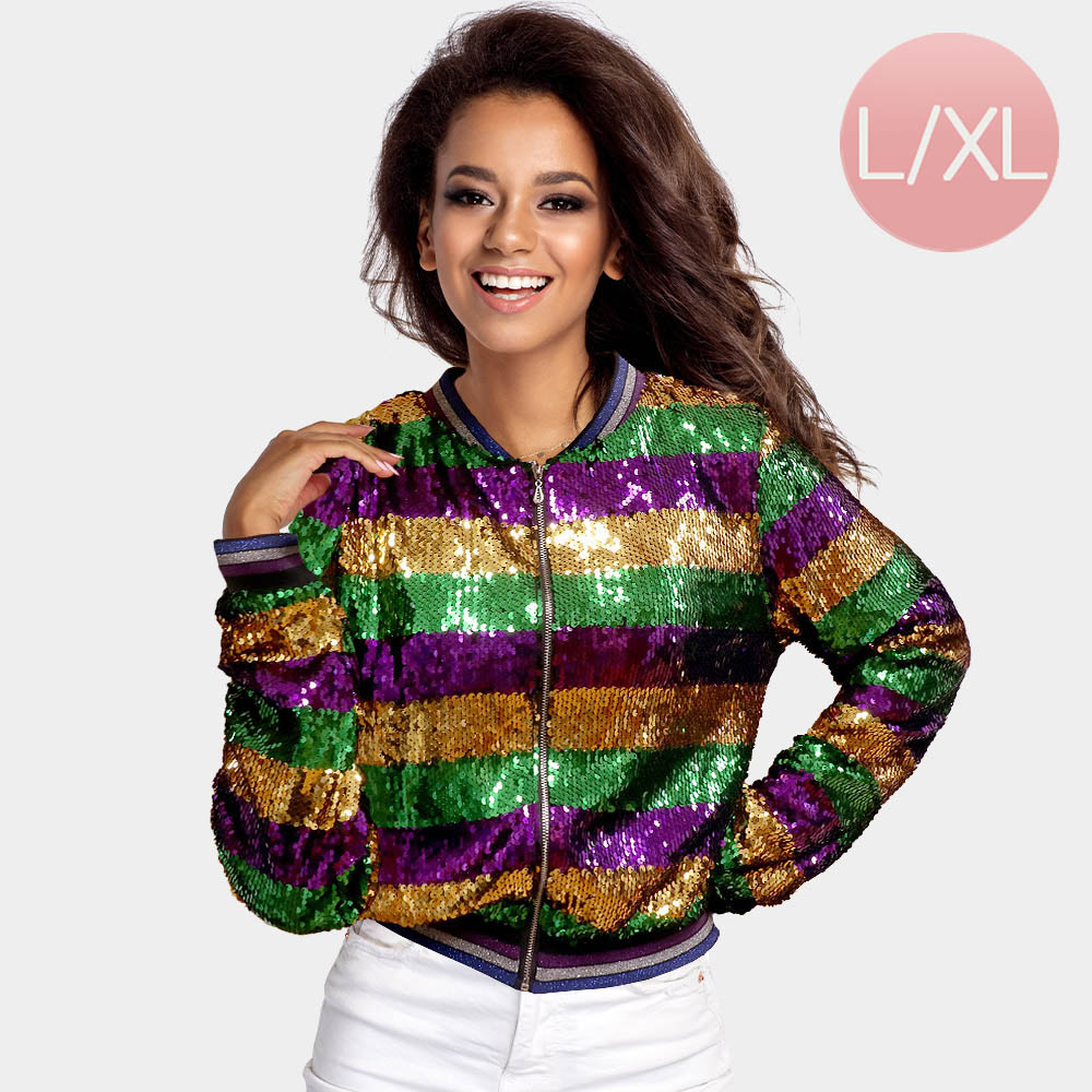 Mardi Gras Reversible Sequin Zipper Jacket