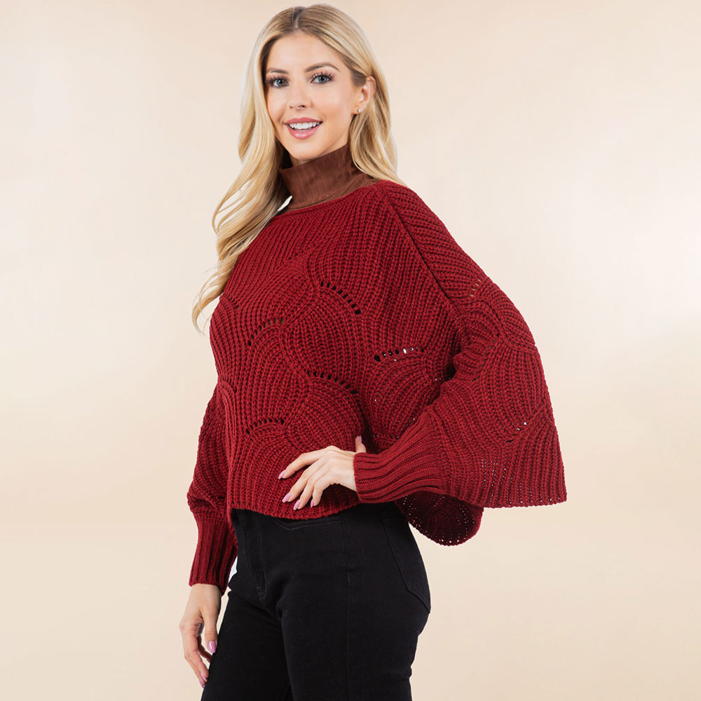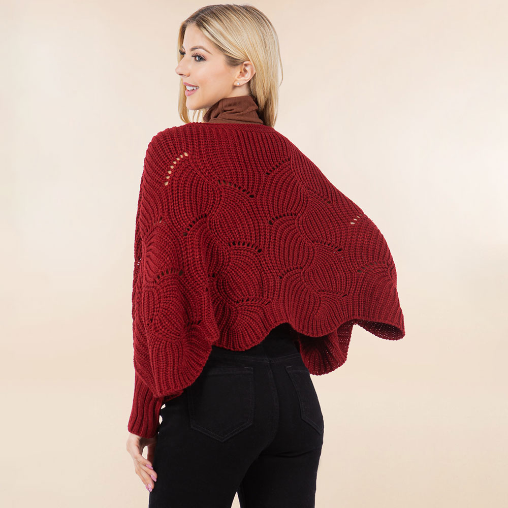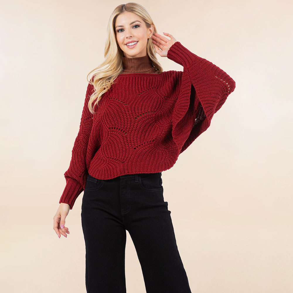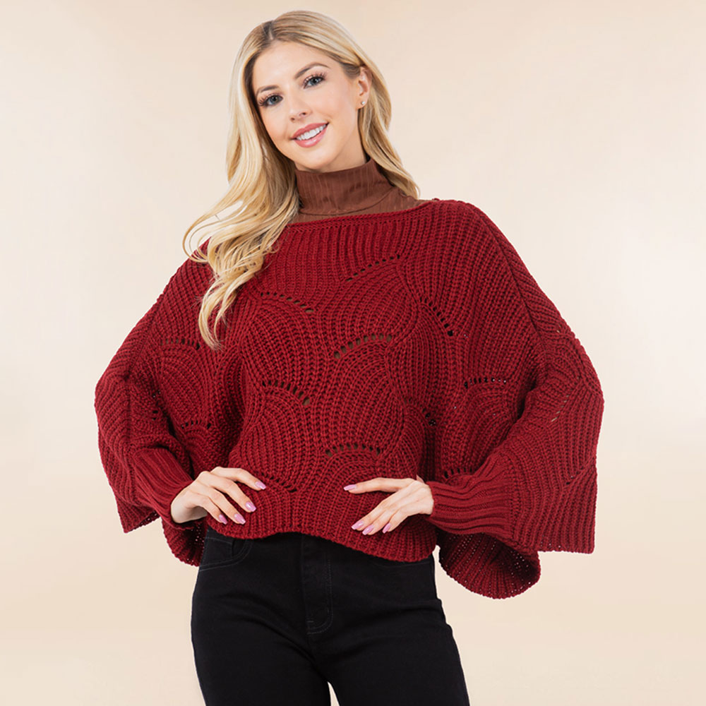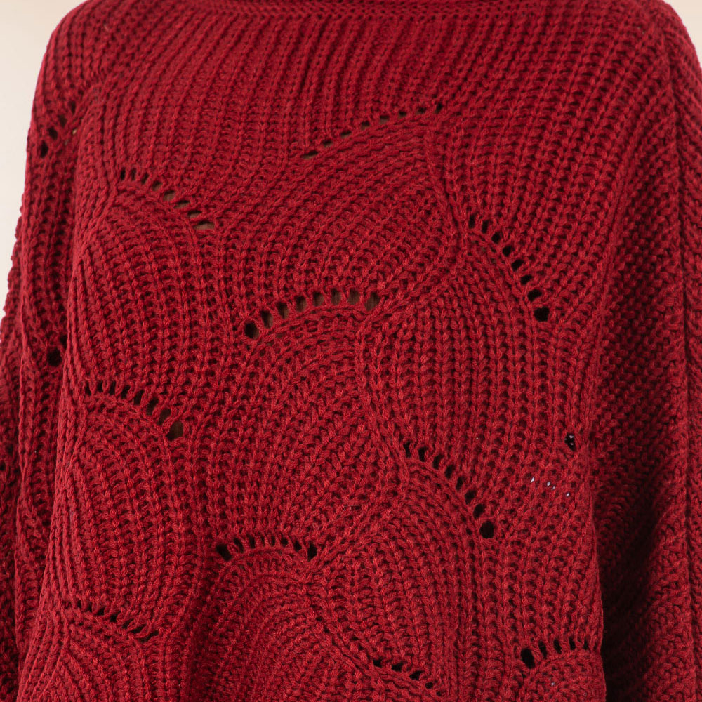 Details • Size : One Size • Material : 100% Acrylic • Relaxed and chic, this loose knit batwing sweater features a textured openwork pattern and wide sleeves for an effortlessly cozy yet stylish fit. Ideal for layering and adding a unique touch to any casual or dressed-up outfit.