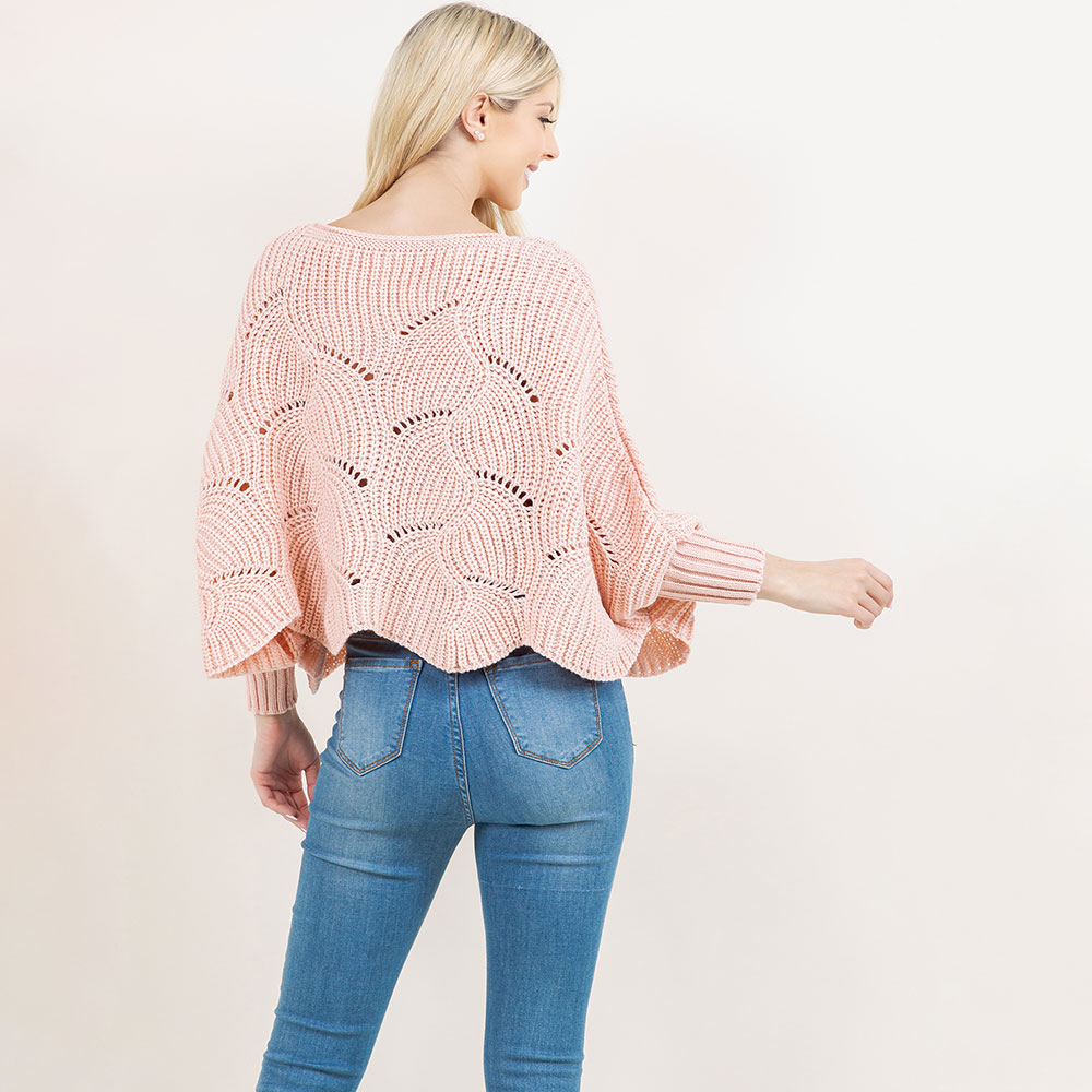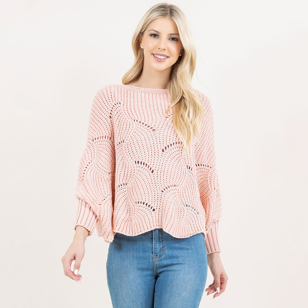 Details • Size : One Size • Material : 100% Acrylic • Relaxed and chic, this loose knit batwing sweater features a textured openwork pattern and wide sleeves for an effortlessly cozy yet stylish fit. Ideal for layering and adding a unique touch to any casual or dressed-up outfit.