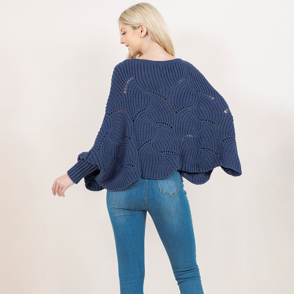 • Relaxed and chic, this loose knit batwing sweater features a textured openwork pattern and wide sleeves for an effortlessly cozy yet stylish fit. Ideal for layering and adding a unique touch to any casual or dressed-up outfit.
