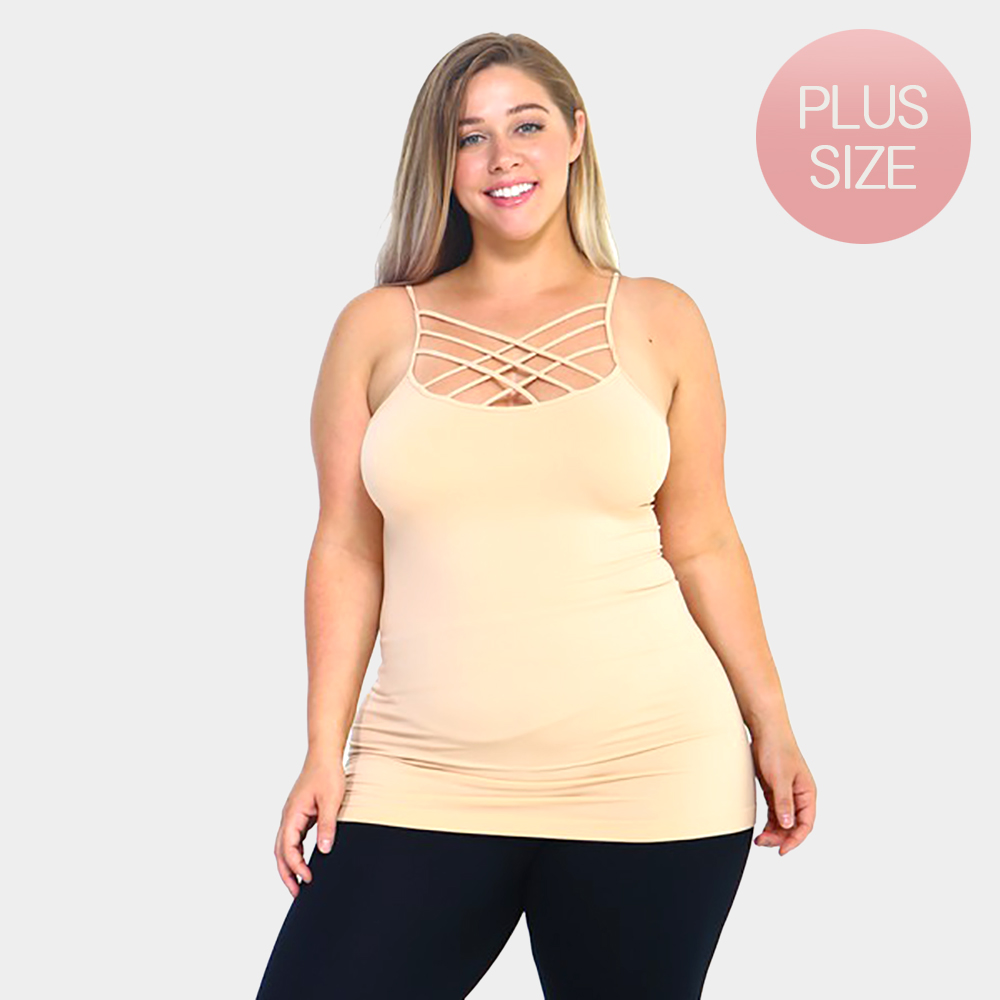 Plus Size Seamless Triple Criss-Cross Front Cami Tank Top