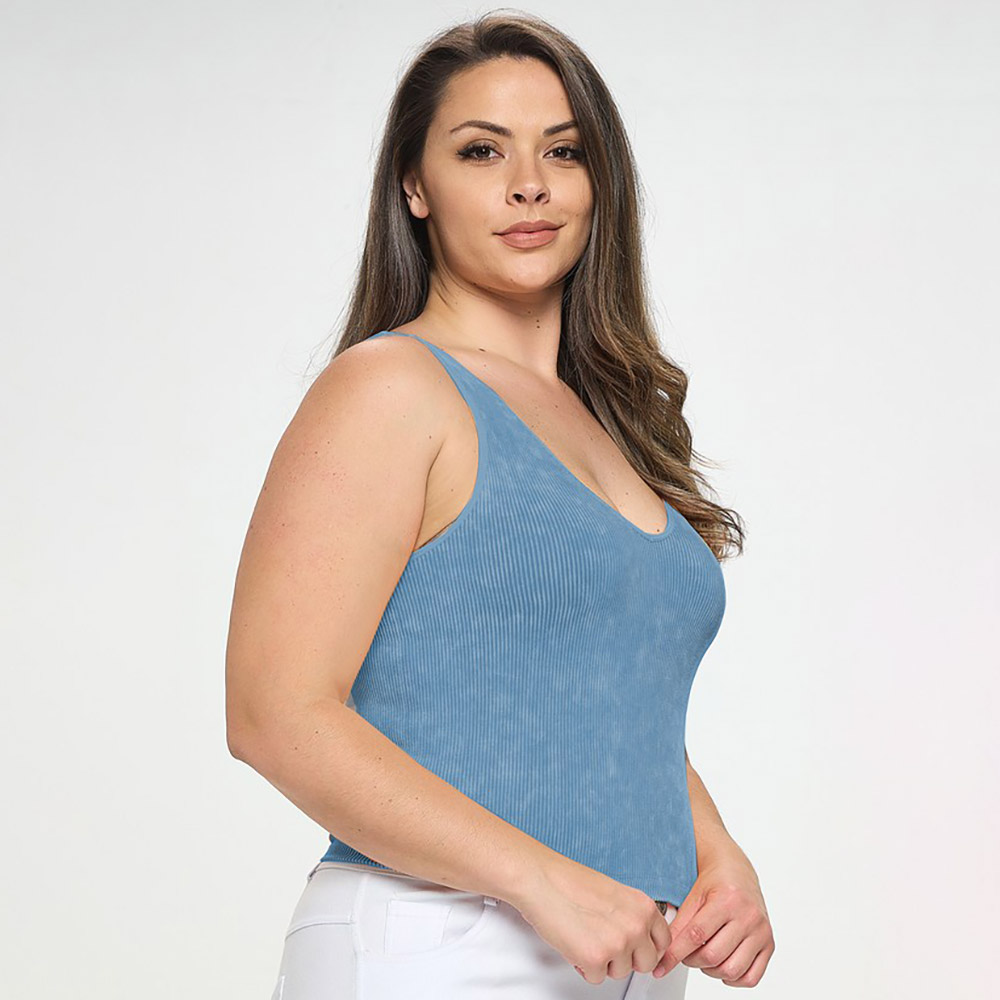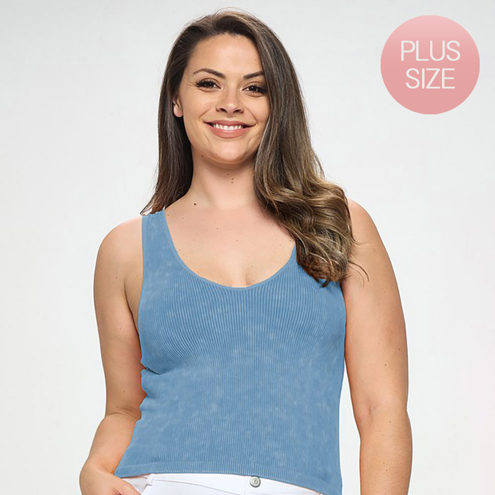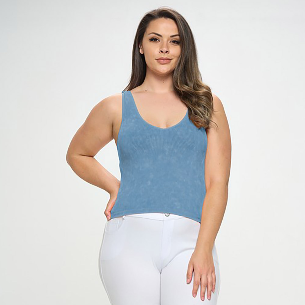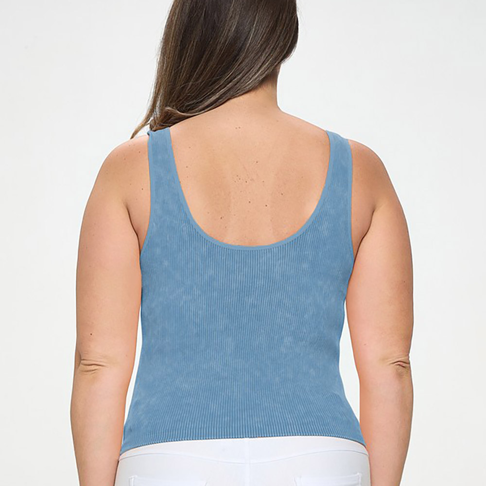 Plus - Womens Seamless Reversible Stonewashed Ribbed Tank