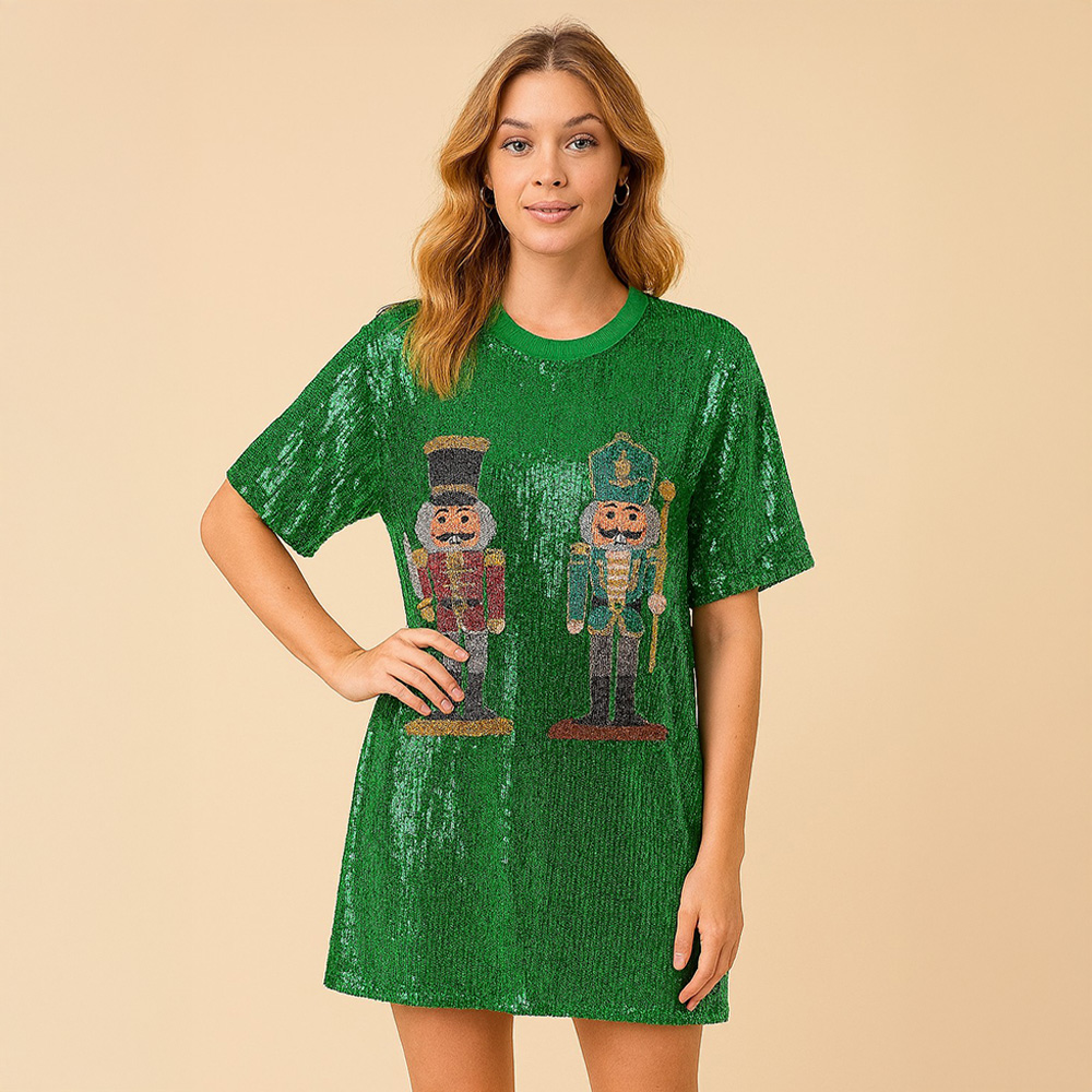 • Make a sparkling statement this season with this sequin nutcracker dress featuring a whimsical holiday design. Perfect for Christmas parties, festive gatherings, or holiday photos, this cheerful dress brings classic charm and radiant shine to your celebration look.