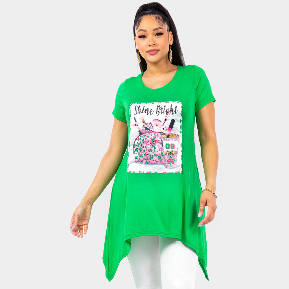 Shine Bright Message Cosmetic Printed Half Sleeve Top