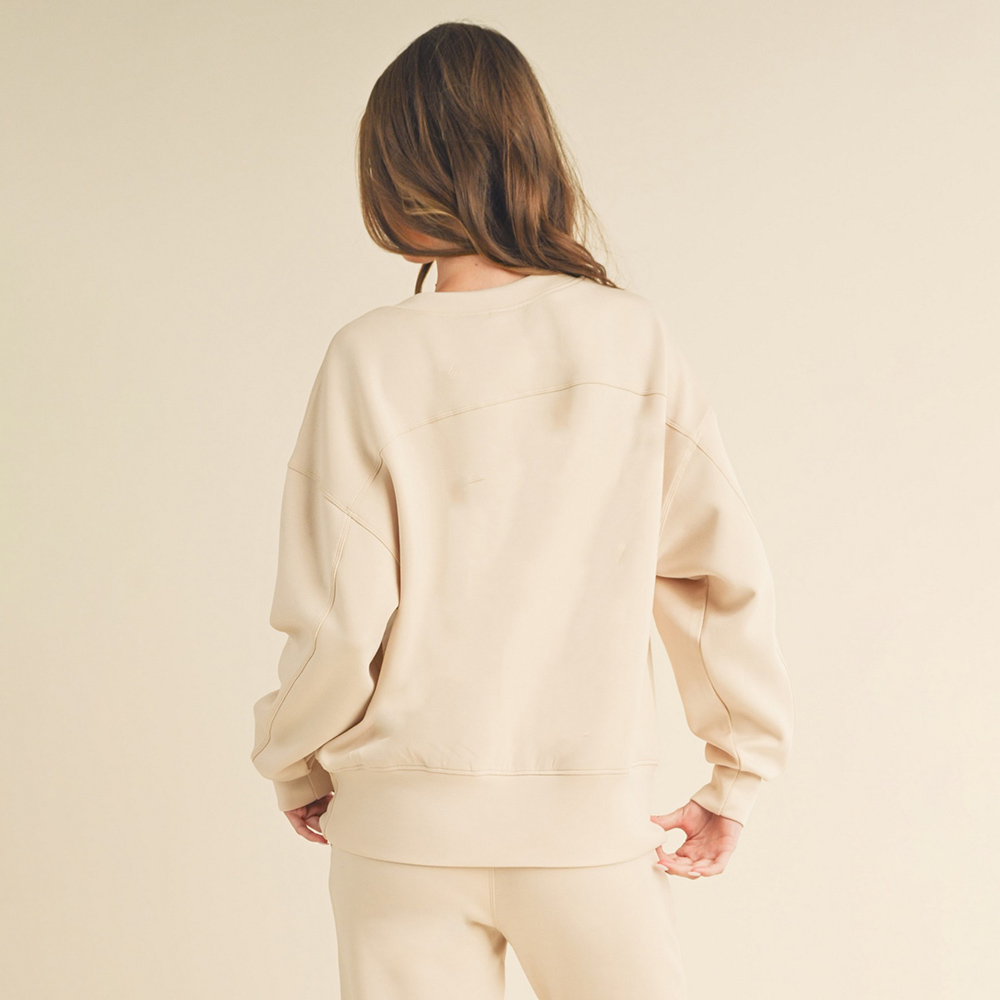 Details • Size : Small • Don’t miss out on this comfortable and versatile sweatshirt with full length sleeves and a banded waistline. Made with the softest, lightweight scuba fabric you’ll ever lay hands on. Perfect for any occasion, whether it be running errands, lounging around, or a relaxing autumn night out. Dress it up or down, the world’s your oyster! • • Long sleeves • Simple casual design • Relaxed silhouette allows for easy movement • Lightweight yet breathable • Banded sleeves and waistline • Simple pullover style • Scuba fabric • Imported • Material : 40%Terylene, 55%Rayon, 5%Spandex