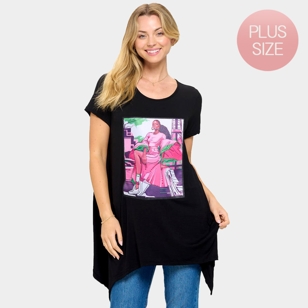 Stone Studded Afro Glam Woman Printed Half Sleeve Top