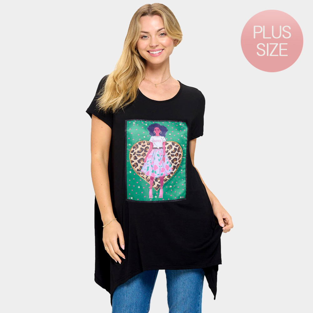 Stone Studded Leopard Heart Woman Printed Half Sleeve Top