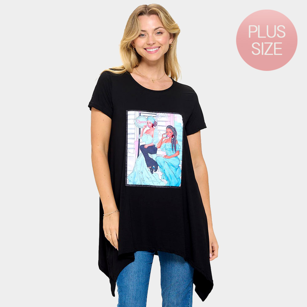 Stone Studded QUEEN Message Glam Women Printed Half Sleeve Top