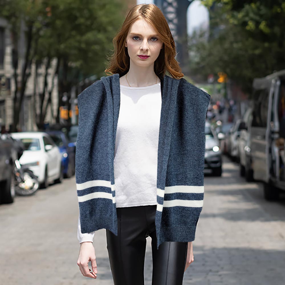 Stripe Knit Hoodie Sweater Scarf