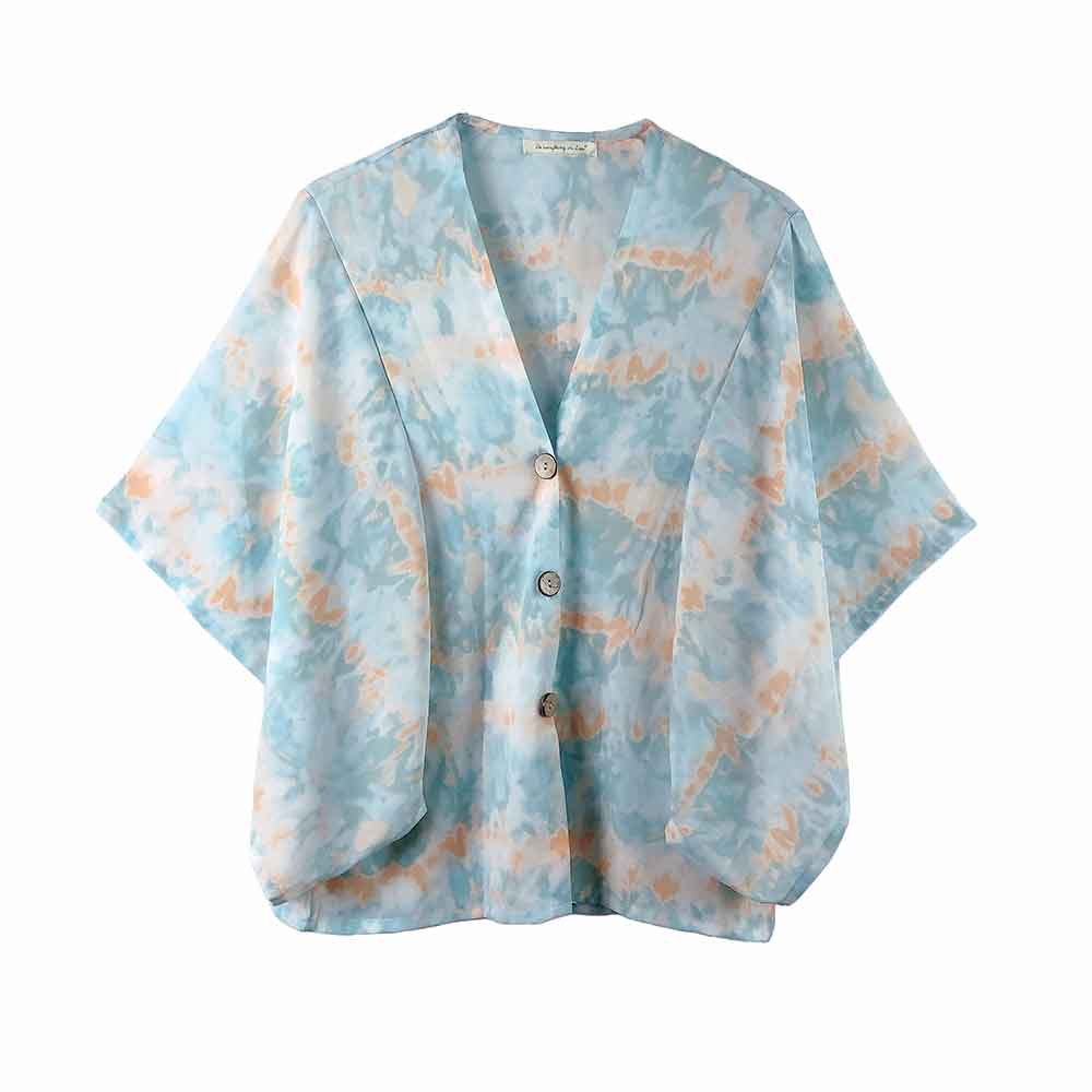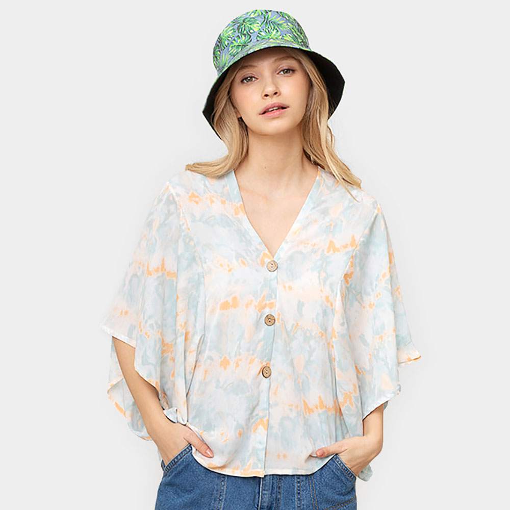 Tie Eye Button Down Kimono Poncho