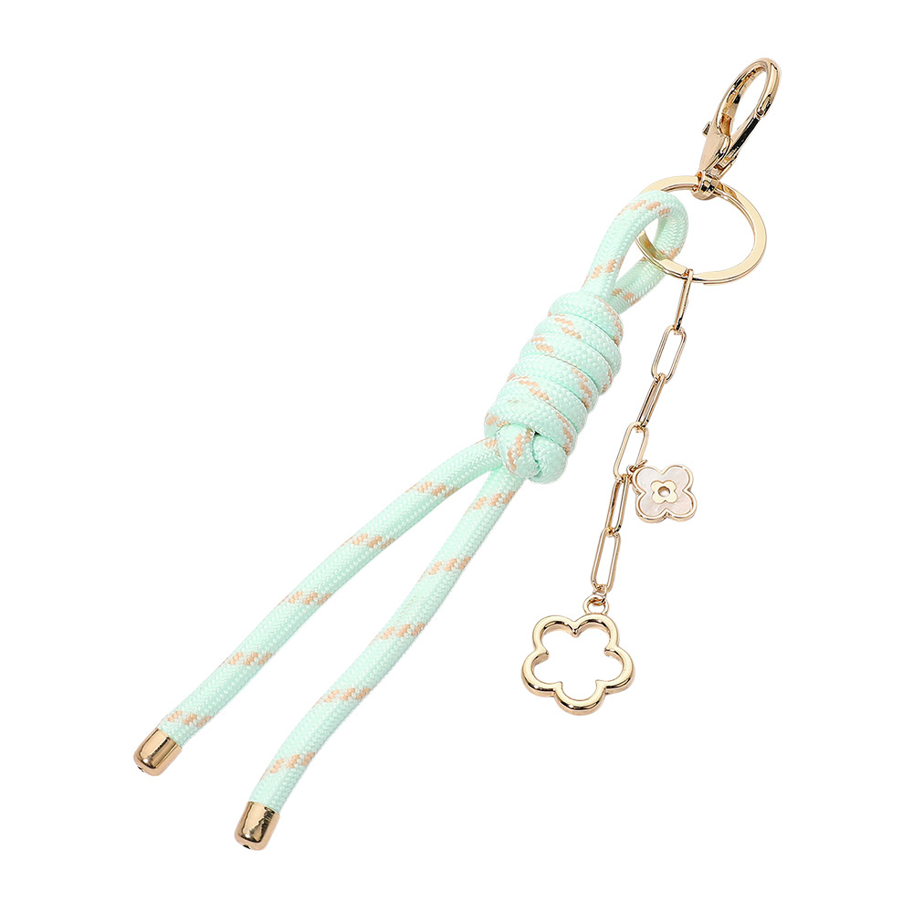 Details • Size : 9.5" L • Stylish rope keychain featuring a knotted cord design paired with dangling floral charms and a secure clip for easy attachment to keys or bags. Adds playful movement and decorative flair to everyday essentials while blending functional convenience with modern charm styling. • Lead and Nickel Compliant