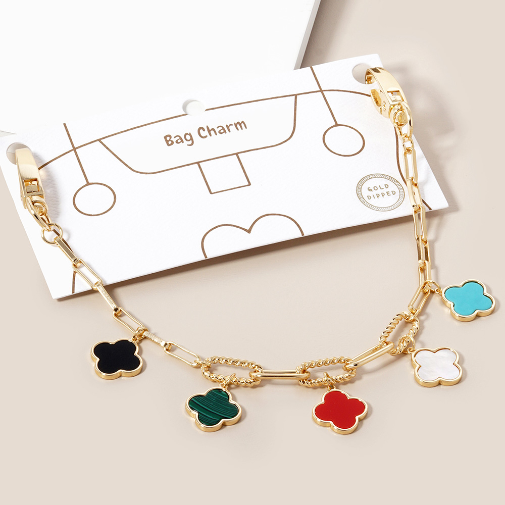 Gold Dipped Quatrefoil Charm Station Paperclip Chain Bag Charm