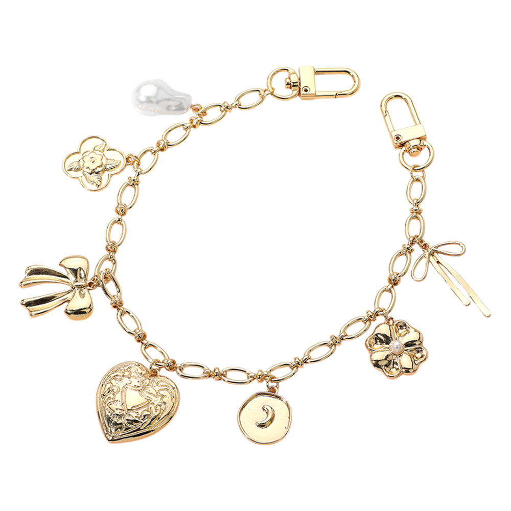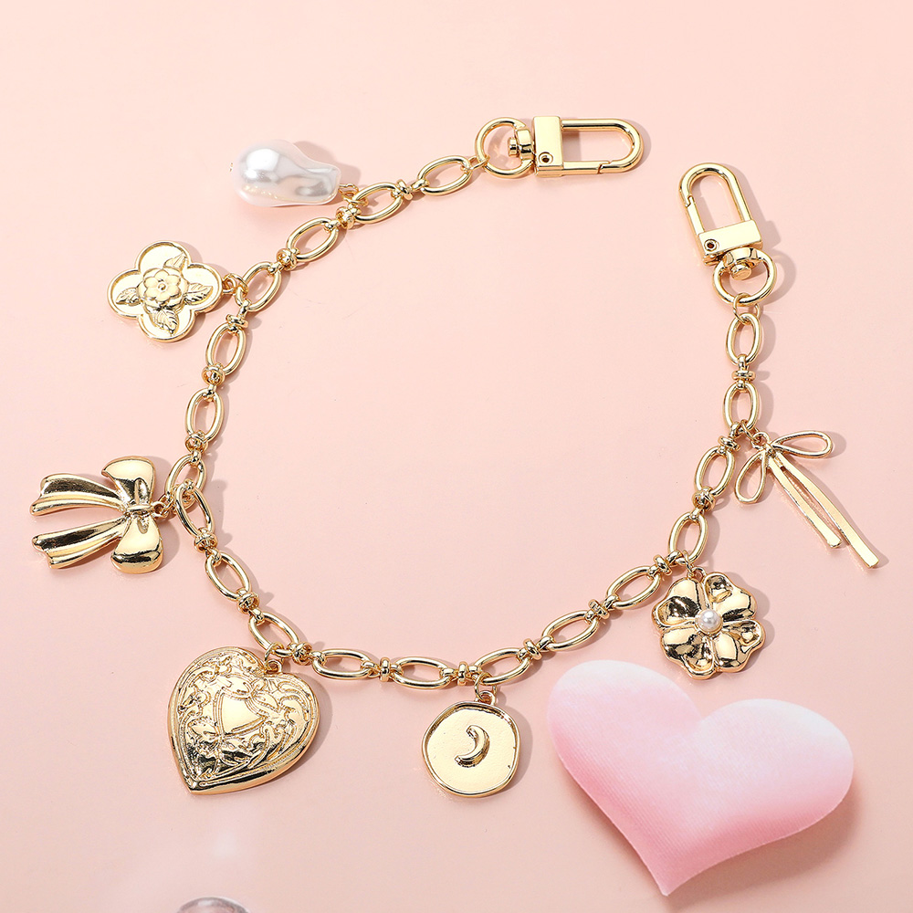 Heart Bow Flower Charm Quatrefoil Pearl Station Bag Charm