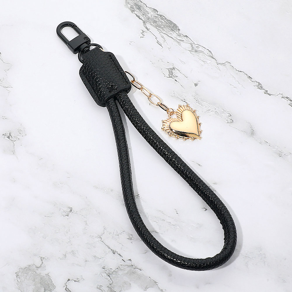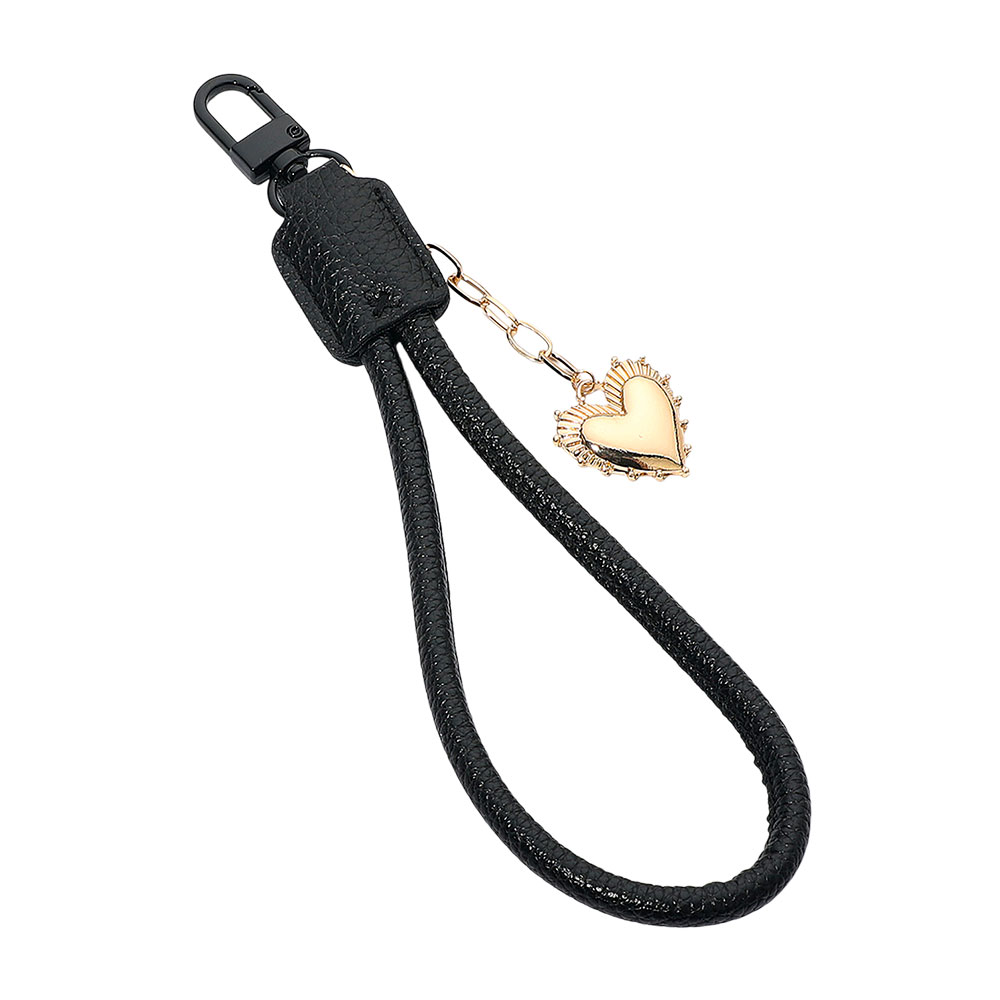 Heart Charm Drop Faux Leather Wristlet Keychain Bag Charm
