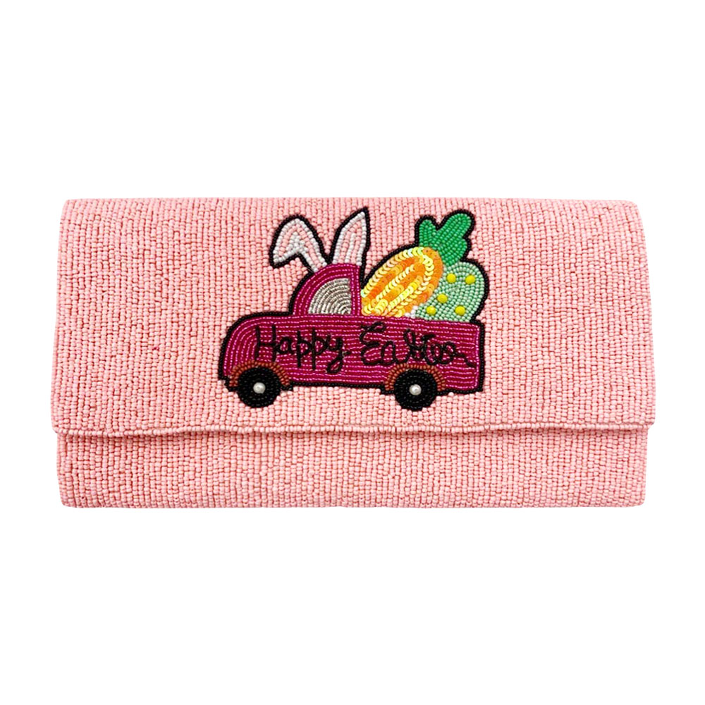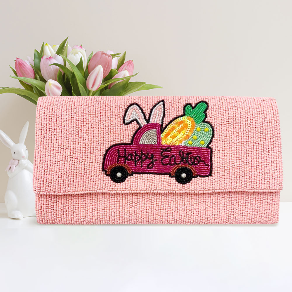 Happy Easter Message Carrot Bunny Car Seed Beaded Clutch / Crossbody Bag