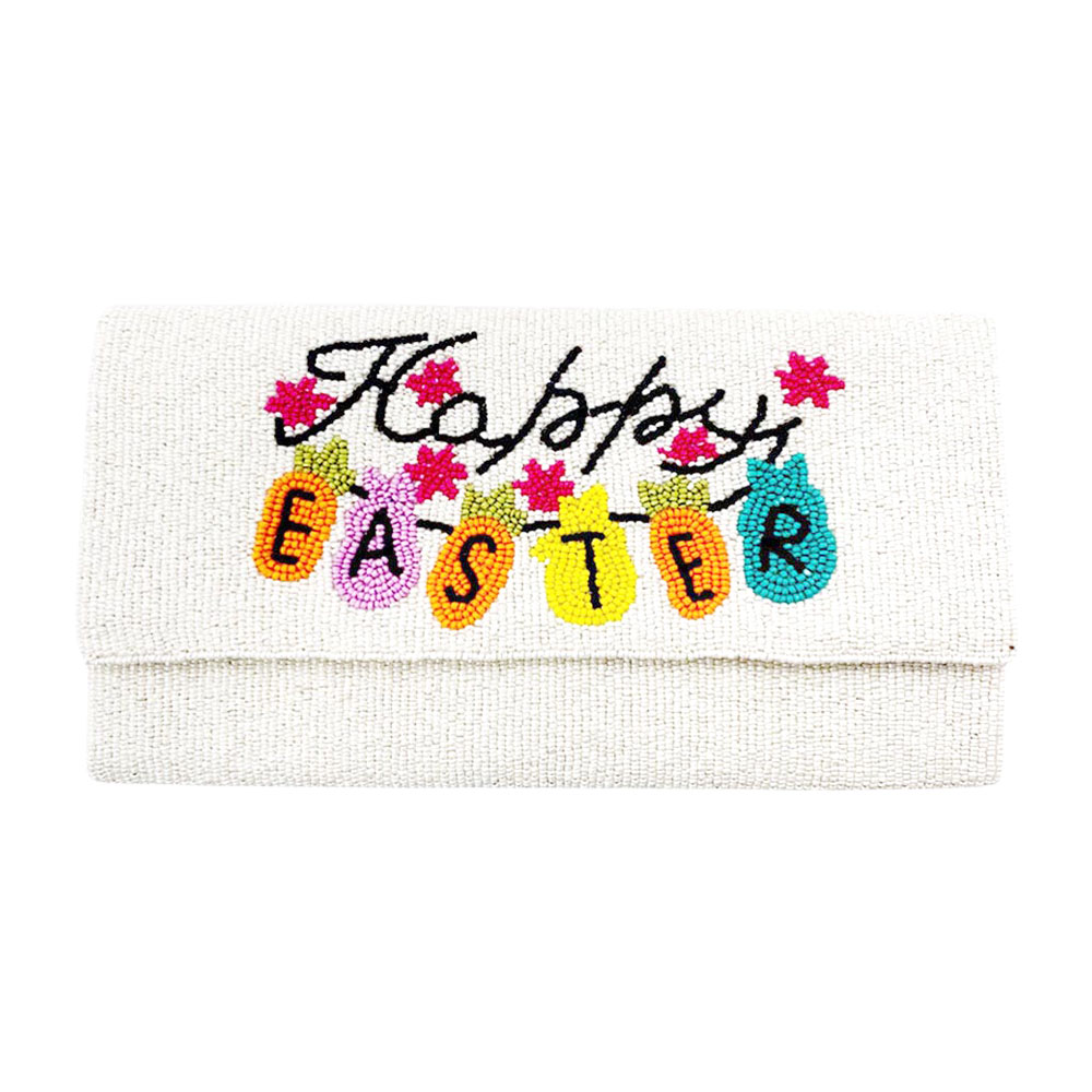 Happy EASTER Message Carrot Bunny Pointed Seed Beaded Clutch / Crossbody Bag