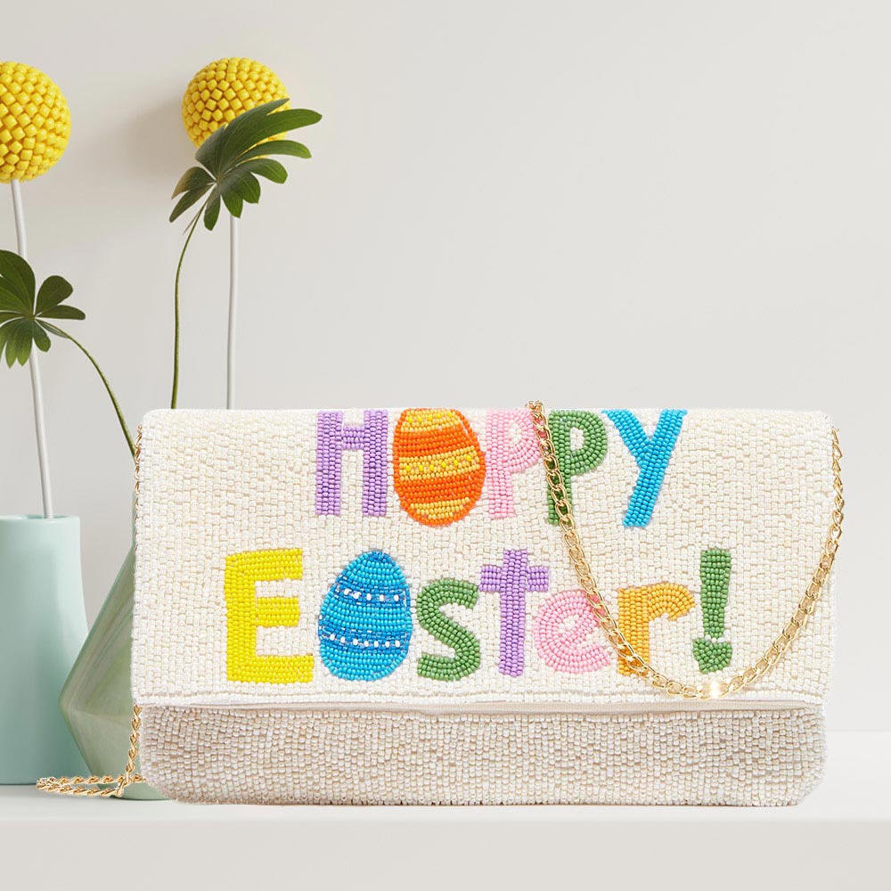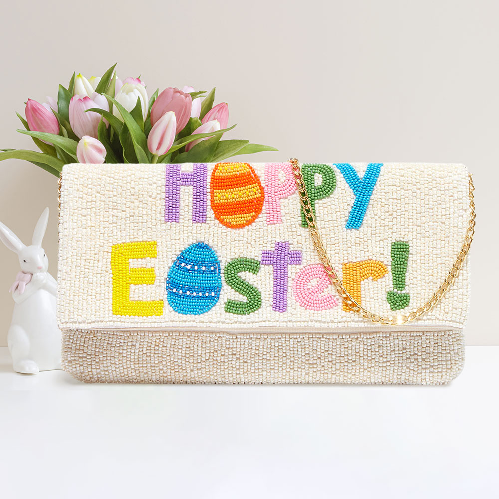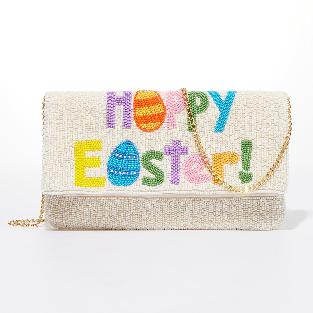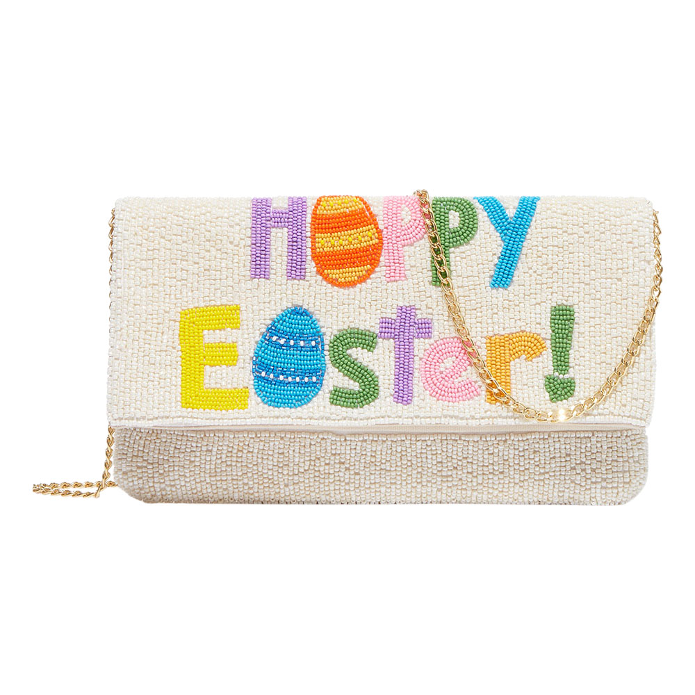HAPPY EASTER Message Seed Beaded Clutch / Crossbody Bag