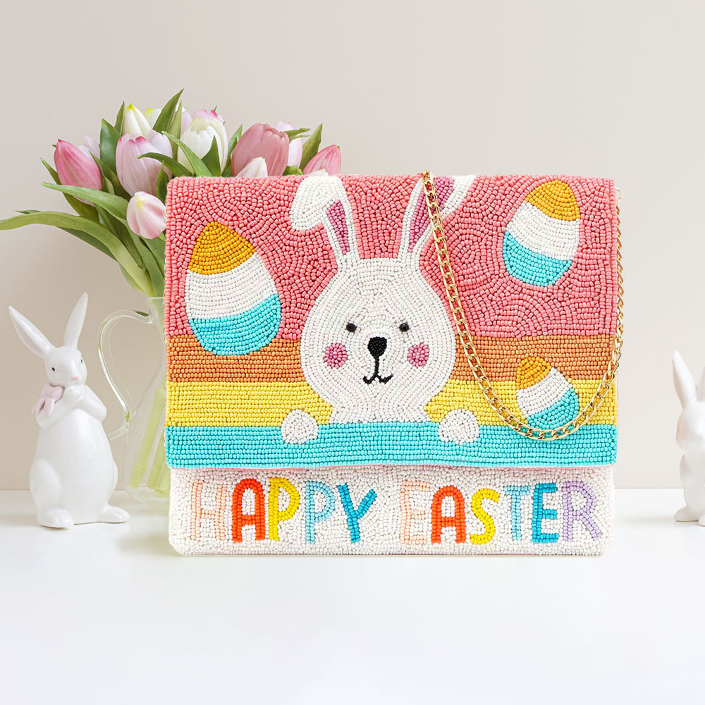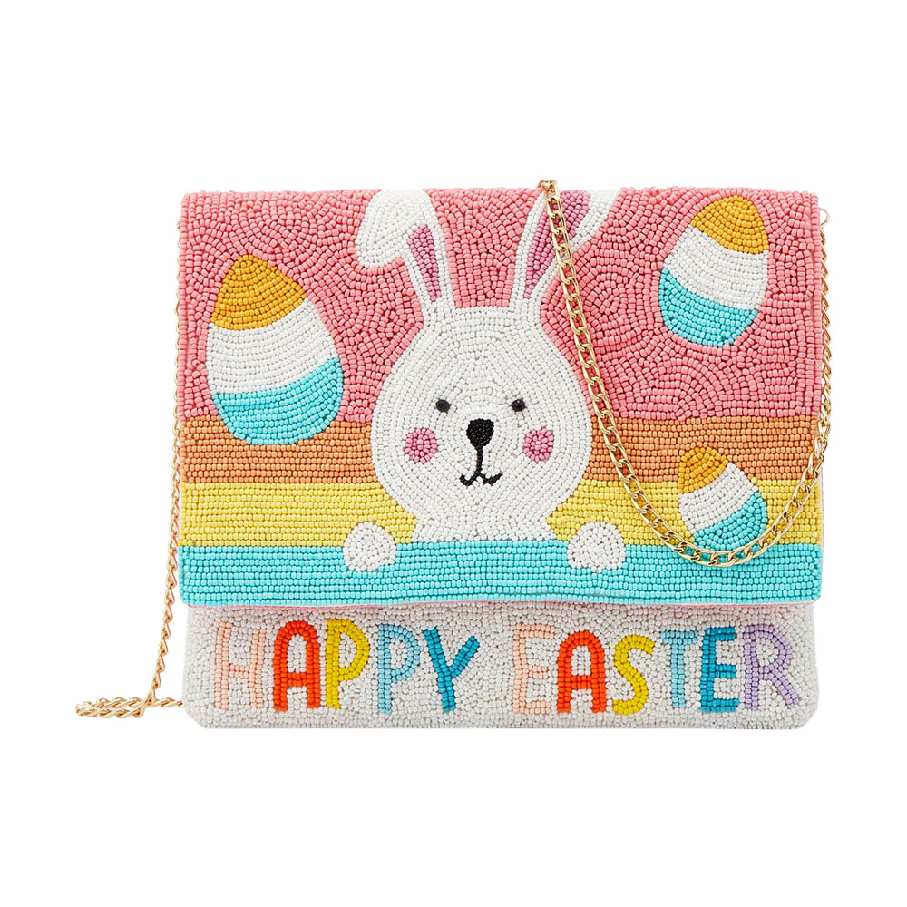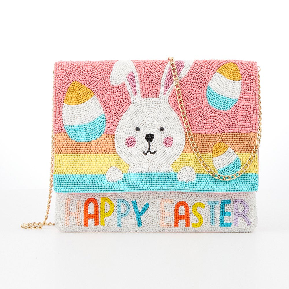 HAPPY EASTER Message Seed Beaded Easter Bunny Clutch / Crossbody Bag