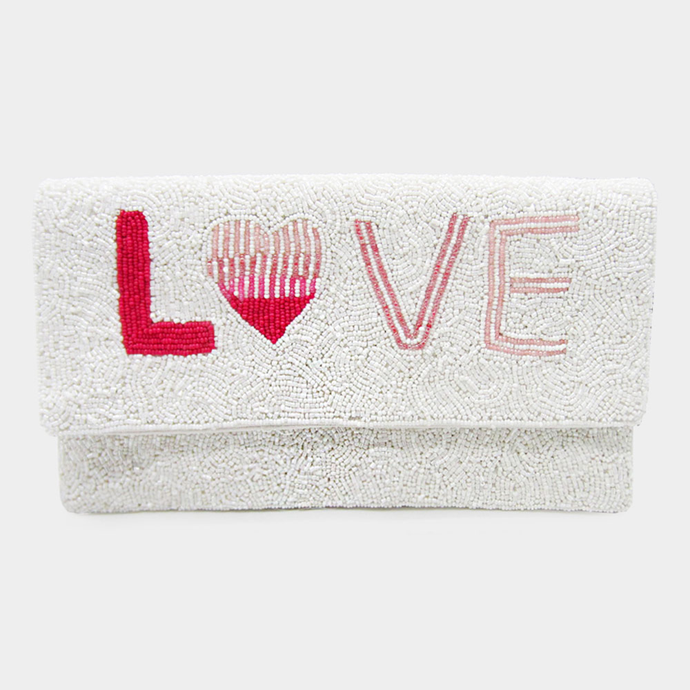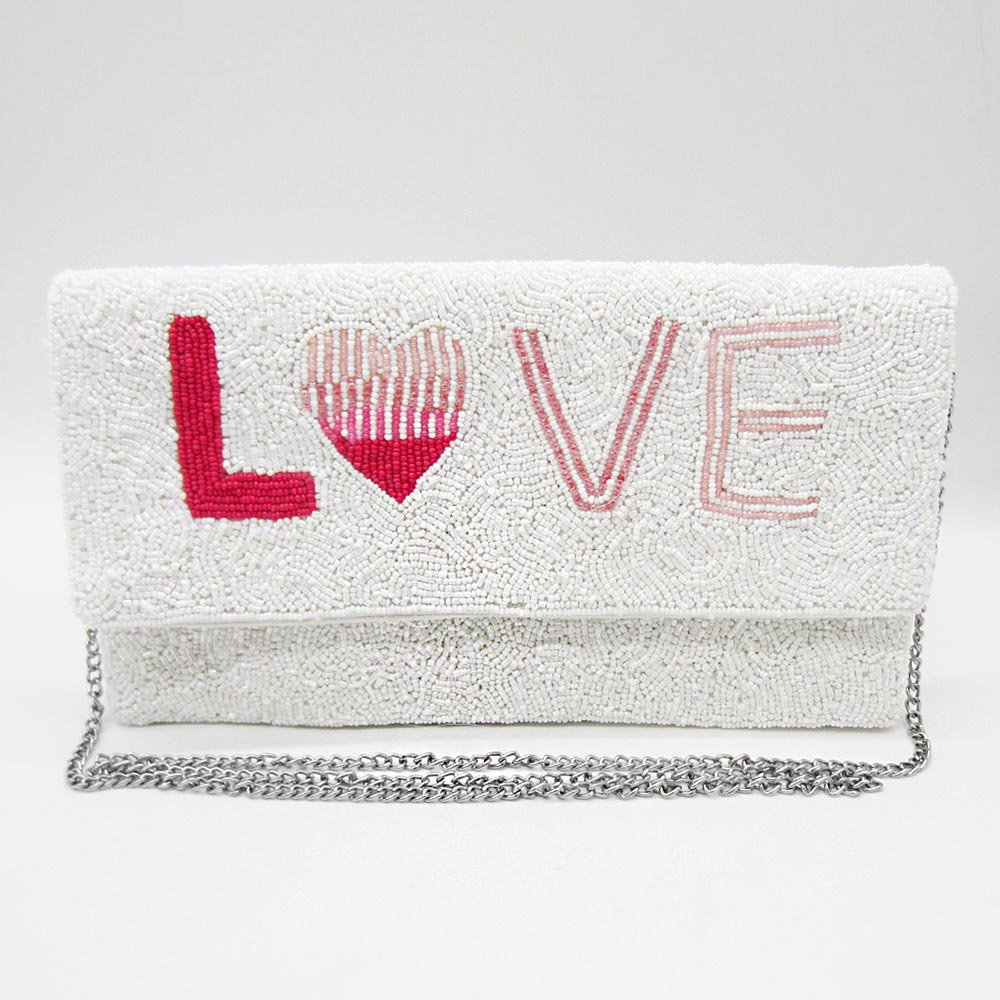 Love Message Seed Beaded Clutch / Crossbody Bag